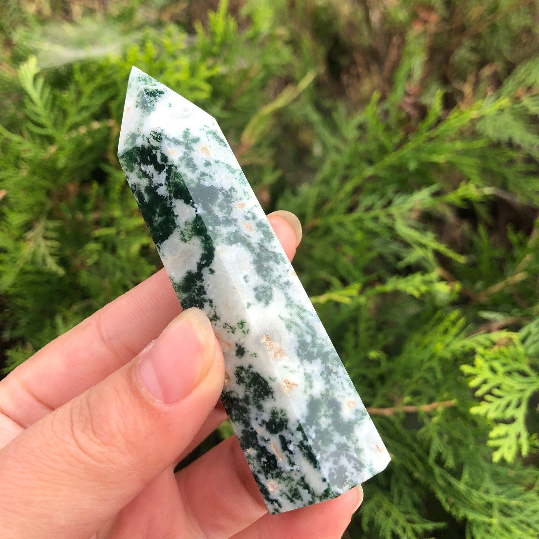 As a massage tool -using your wand’s pointed tip as a massage tool can channel the crystal’s individual properties into your body, while also giving physical relief and relaxation. Whether you’re looking for an energy boost, a heightened sense of calm, or a shot of power before a big meeting, a quick 2-3 minute massage session with your chosen crystal will do wonders for you, spiritually and physically!