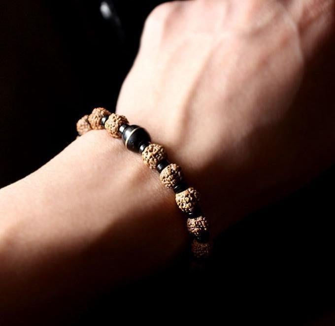 Six True Words Natural Coconut Shell and Rudraksha Bracelet
