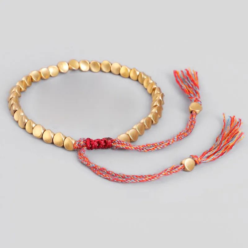 Tibetan Copper Bead and Luck Rope Bracelet