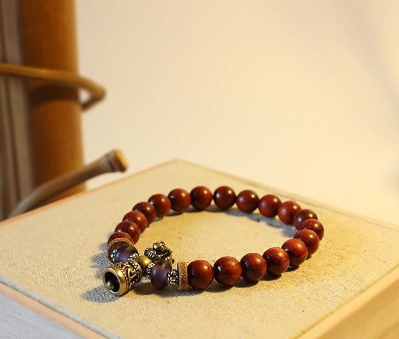 Tibetan Ghanta Hand Bell Wood Mala Beads Bracelet