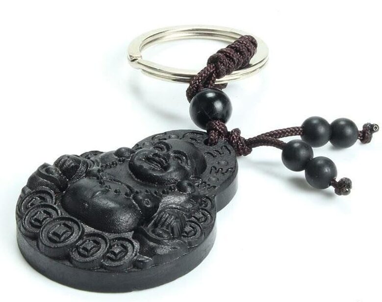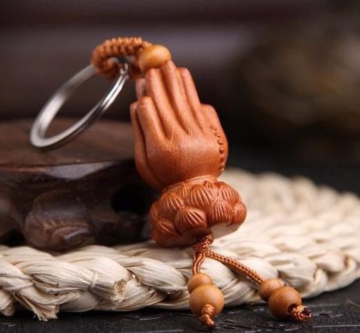 Peach Wood Namaskara Mudra Lotus Buddha Hand Key Ring