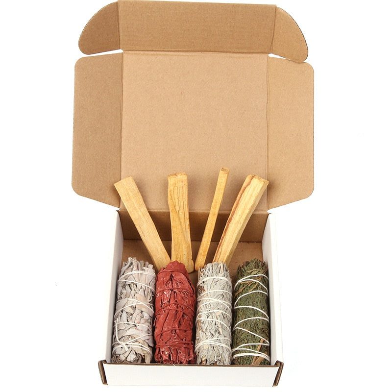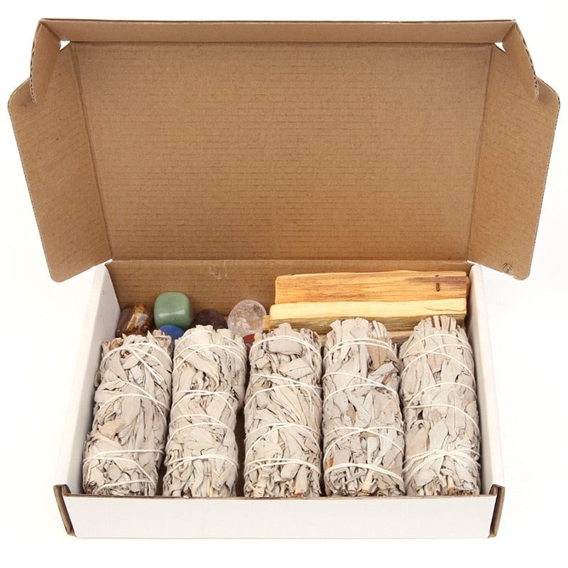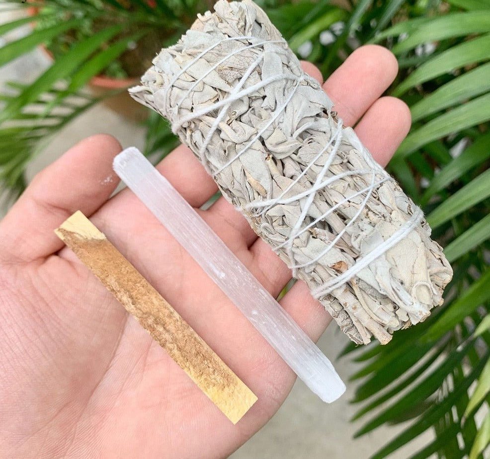 Set Content:White Sage, Palo Santo, Abalone shell, matchbox, and Ritual manual