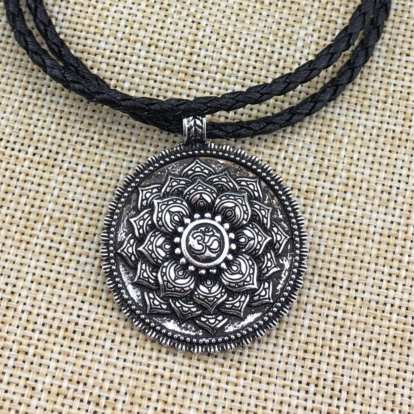 Antique Silver Om Lotus Mandala Pendant Necklace