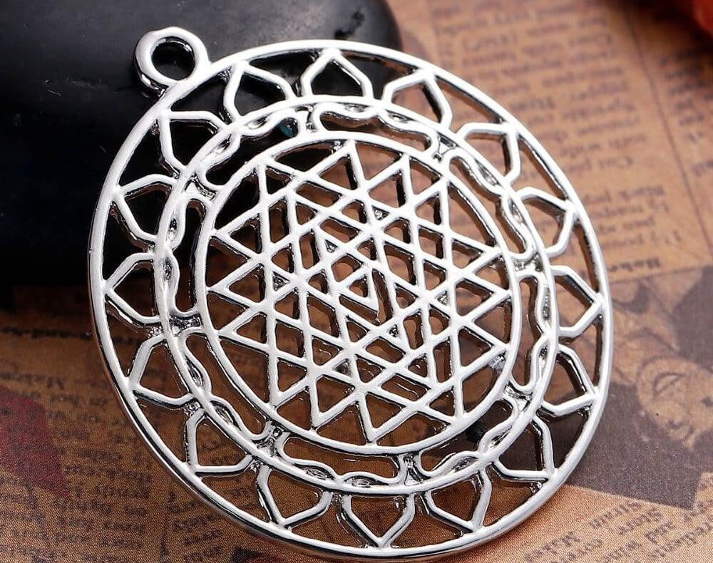 Sacred Sri Yantra Meditation Silver Pendant