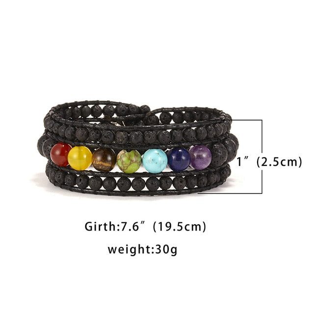 Apply a drop of your favorite essential oil on the natural lava stones of this stylish piece to enjoy the benefits of aromatherapy with the balancing effect of this 7 Chakra bracelet