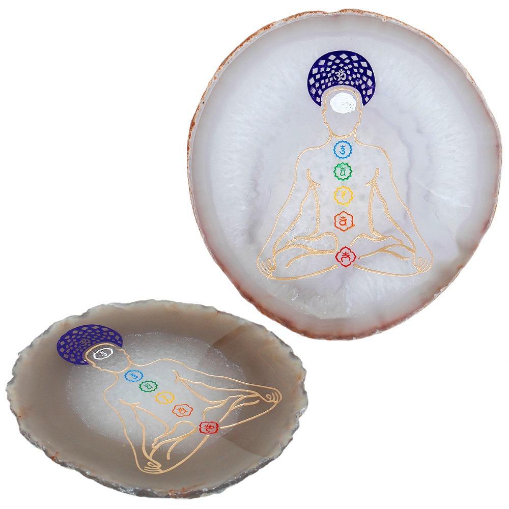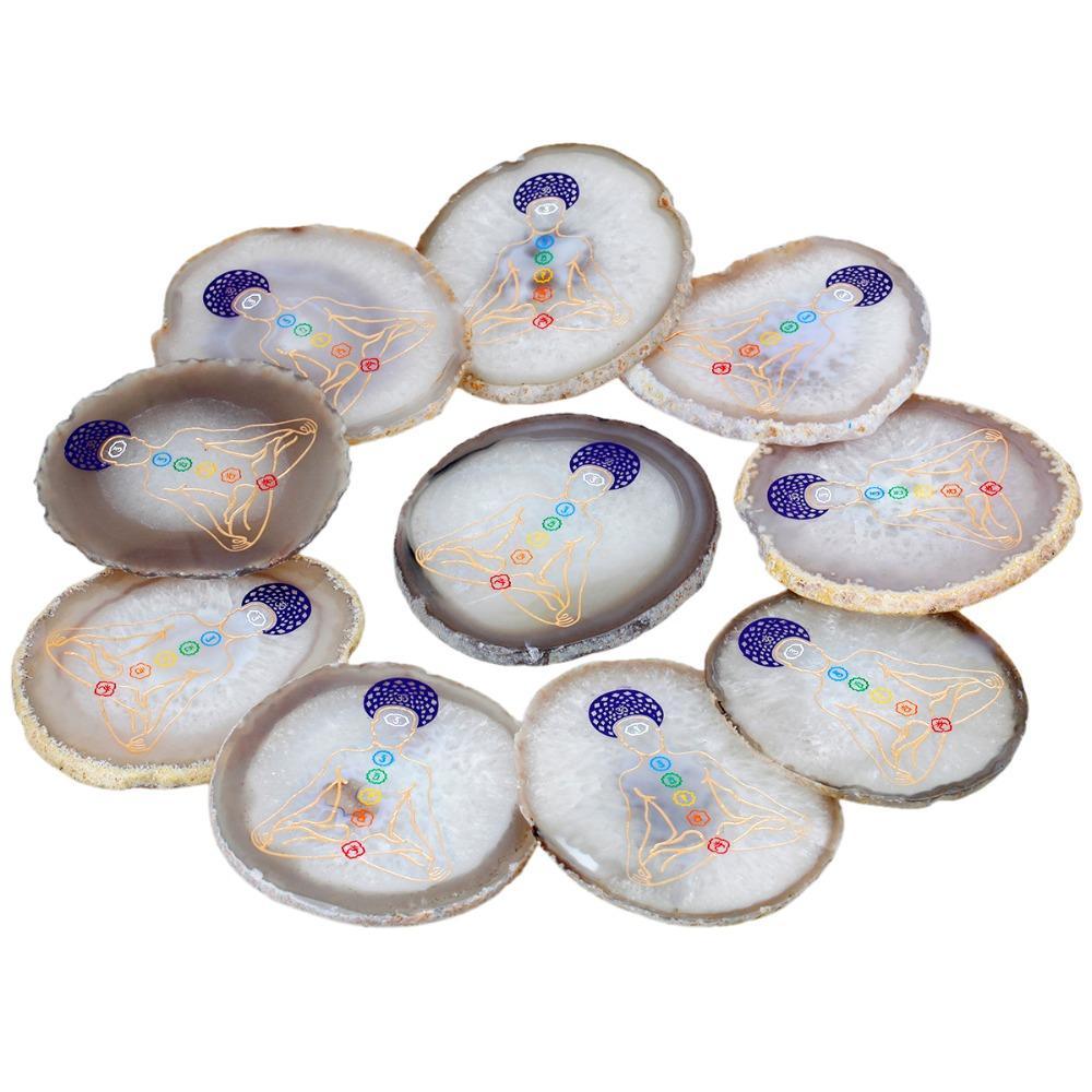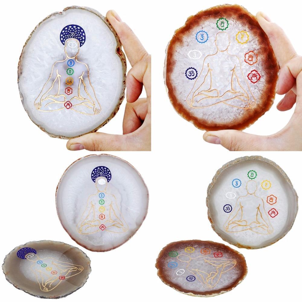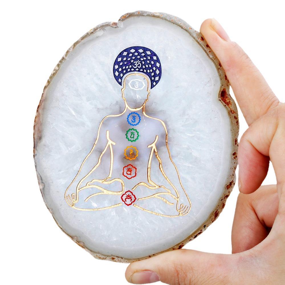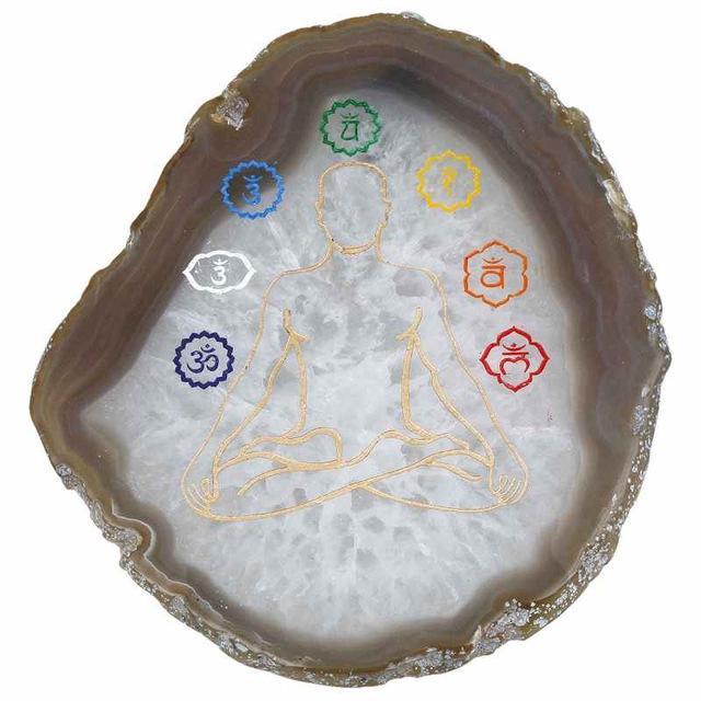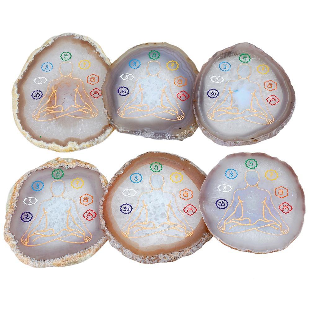 Designed to balance the seven chakras, our handcrafted 7 Chakra Engraved Agate Slice brings harmony and balance to the body and spirit. It promotes healing and vitality. Feel the energy of your chakras as this beautiful piece helps them restore to balance.