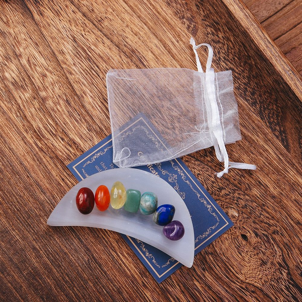 Transform your space into a sanctuary of positive energy with our divine 7 Chakra Healing and Recharging Set. This remarkable collection of crystals is not only a stunning addition to your home decor but also a powerful tool for balancing and revitalizing your mind, body, and spirit. Crafted with an exquisite selection of Selenite, Red Jasper, Red Agate, Citrine, Aventurine, Amazonite, Lapis Lazuli, and Amethyst, this set is a treasure trove of holistic healing and transformative vibrations.