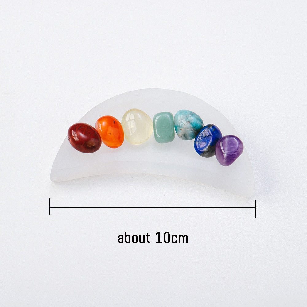 Each crystal in this set resonates with one of the seven chakras, allowing you to restore and harmonize your energy centers. From the grounding properties of Red Jasper to the soothing essence of Amethyst, these gemstones bring balance and alignment to your being. Displayed in a size of about 10cm, they radiate their radiant energy, infusing your space with a sense of serenity, clarity, and renewed vitality.