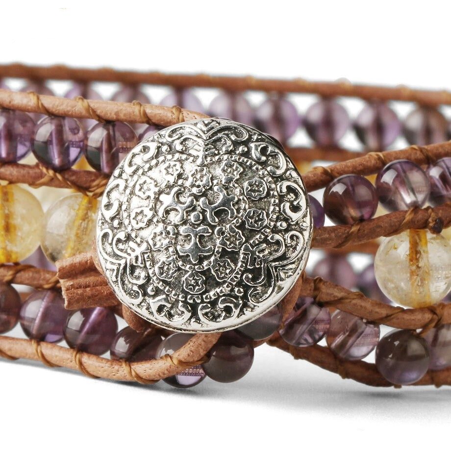 Crafted with care and adorned with the radiant Citrine and soothing Amethyst, this bracelet is a tangible representation of the harmonious balance between spiritual enlightenment and material prosperity.