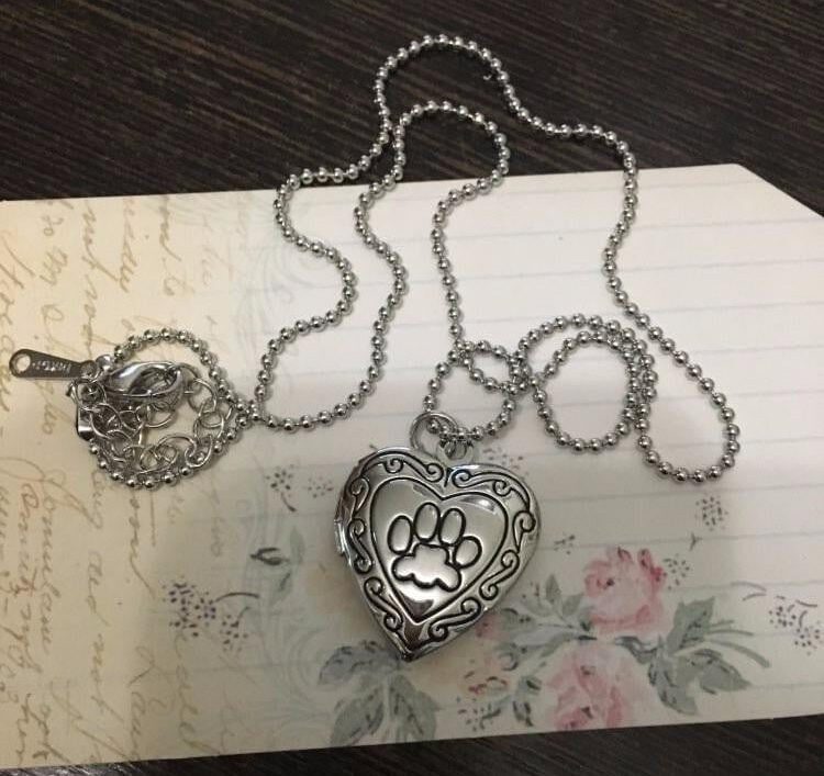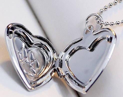 This Adorable Engraved Paw Heart Locket Pendant Necklace features a heart shaped locket with an engraved paw print inside an engraved heart with 2 photo slots where you can insert o picture of your fur babies to keep them close to her heart.. Its perfect for any pet mom! It has a bright polished finish for that special shine.