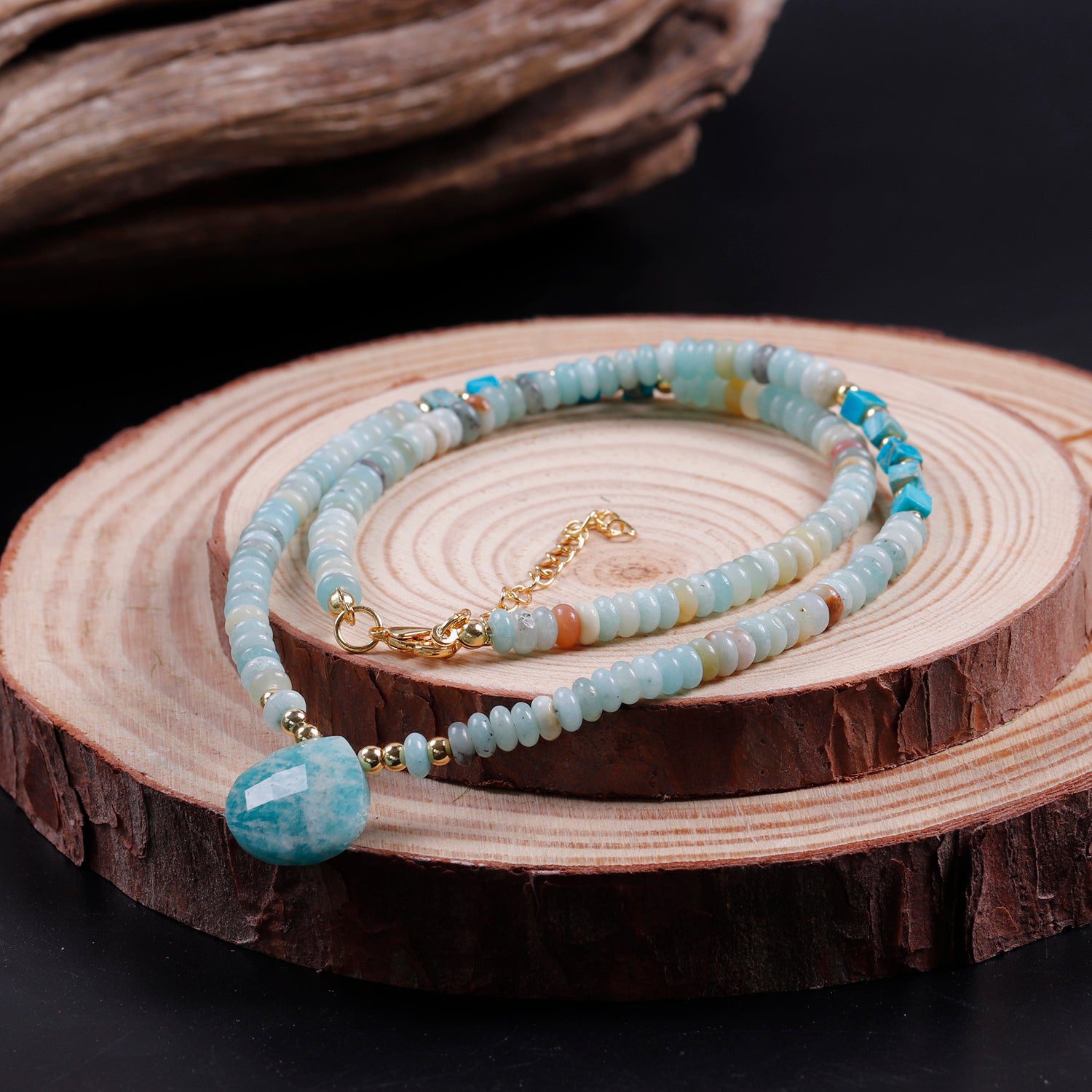 This necklace is also very useful during times of transition and transformation. When you're having trouble adjusting to a new beginning or a sudden change, Amazonite can help.