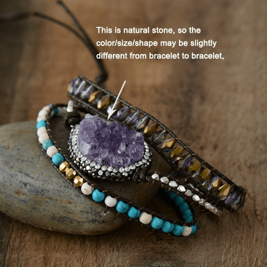 Life should be colorful and expressive and its best paired with a one-of-a-kind style. After all—you’re a true original! This Amethyst Druzy Wrap Bracelet is the perfect accessory for fashionistas and the free spirited. Show off that boho chic that you are with a pure soul and an open mind. Channel your inner wanderer and adventurer in mind, spirit, and style that showcase your love of beauty and the arts.