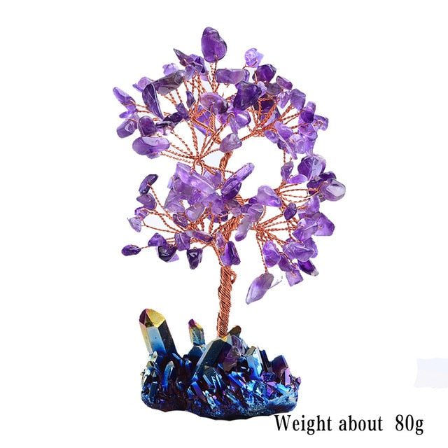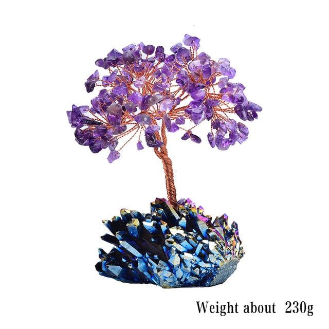 Created with natural amethyst stones, our beautiful Amethyst Tree Of Purification cleanses the aura and transmutes negative energy, and stimulates the throat and crown chakras. It is comprised of a trunk and branches of twisted copper wire with Amethyst crystal bits and Titanium Quartz base.
