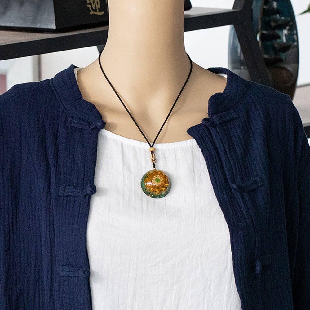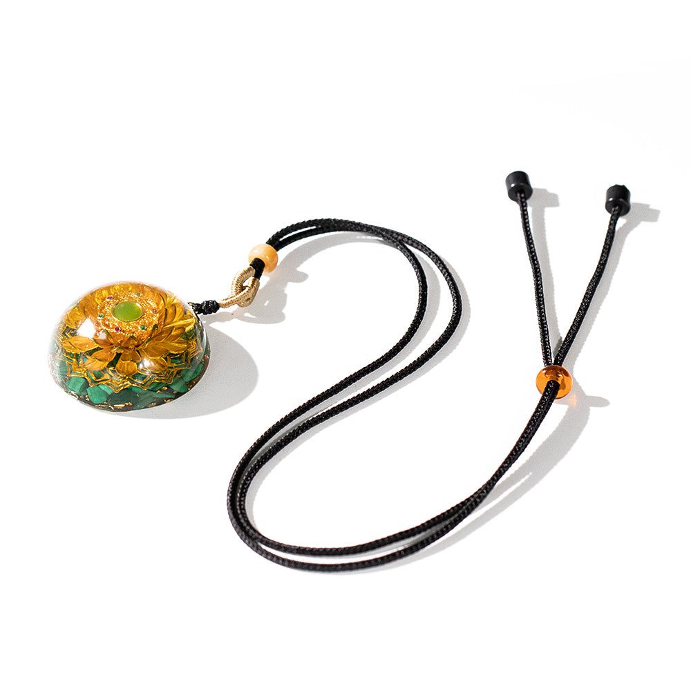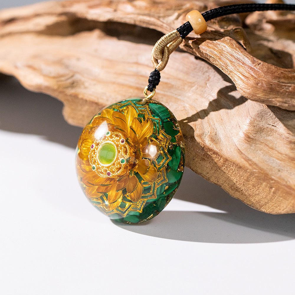 Encapsulating these powerful elements is the protective epoxy resin, which seals and enhances the pendant's energy, creating an orgone matrix that promotes positive energy flow and repels negativity.