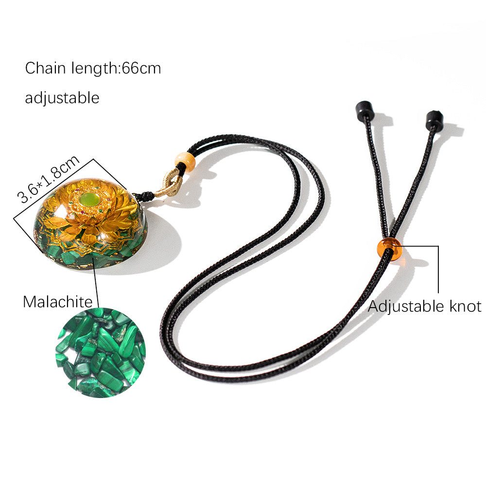 Crafted with genuine malachite, the Attuned Rebirth Orgone Pendant embodies the potent healing and transformative energy of this majestic gemstone. Malachite's vibrant green hues symbolize growth, regeneration, and harmony, making it an ideal companion on your journey of personal growth and spiritual evolution.