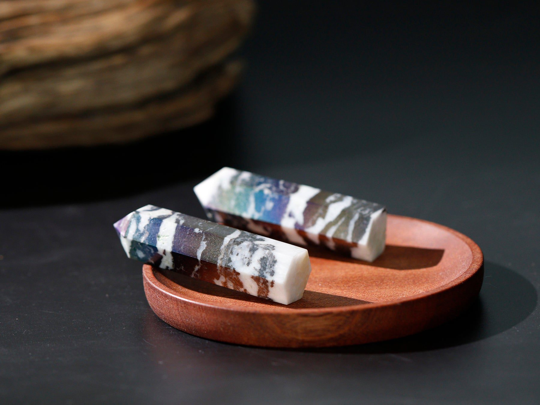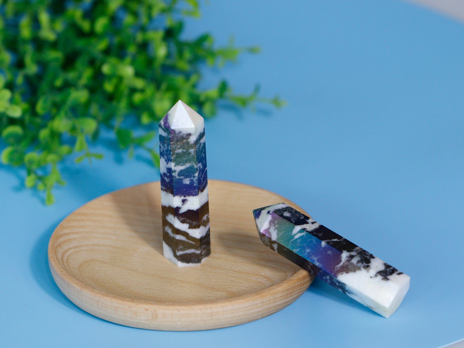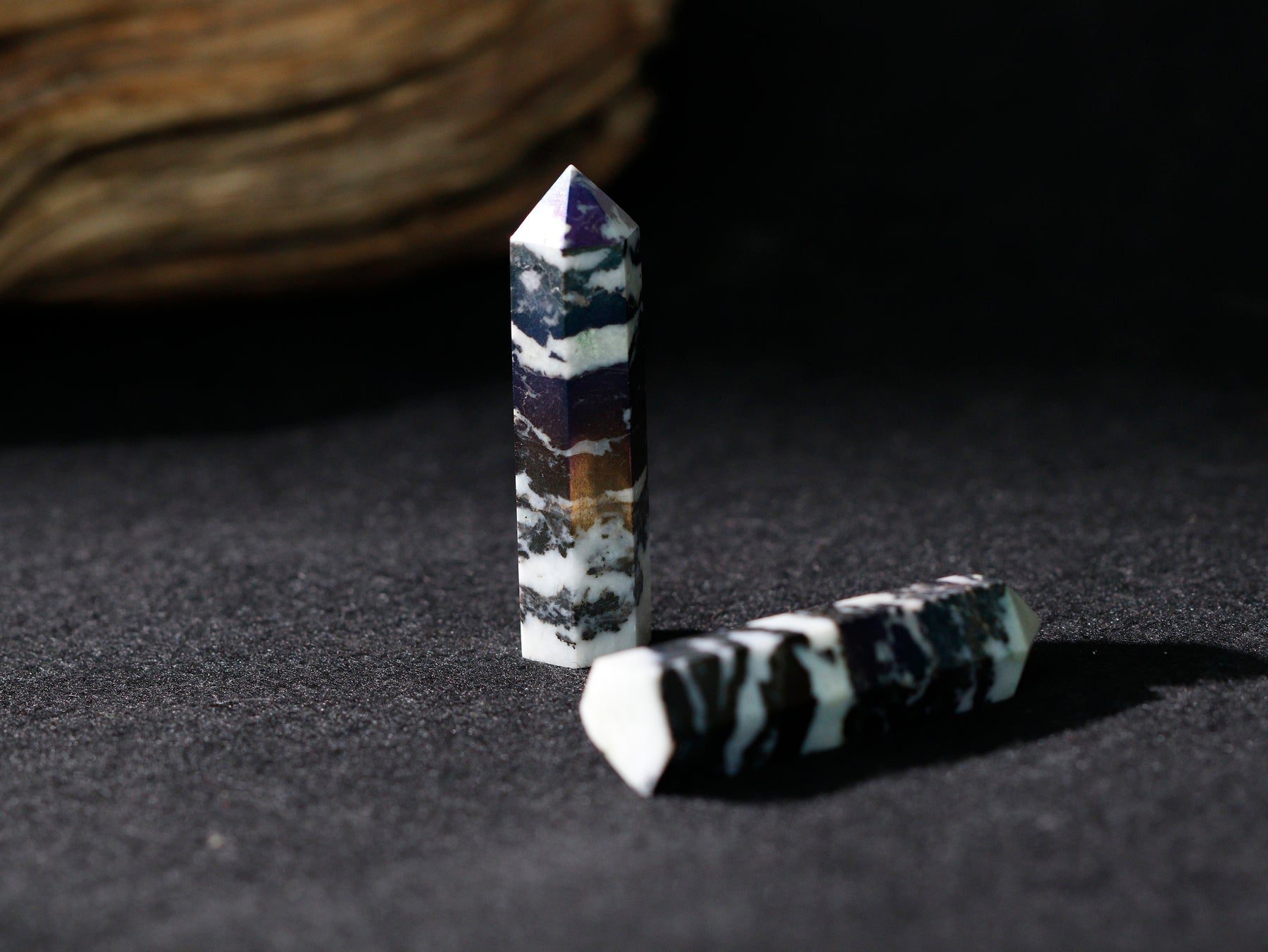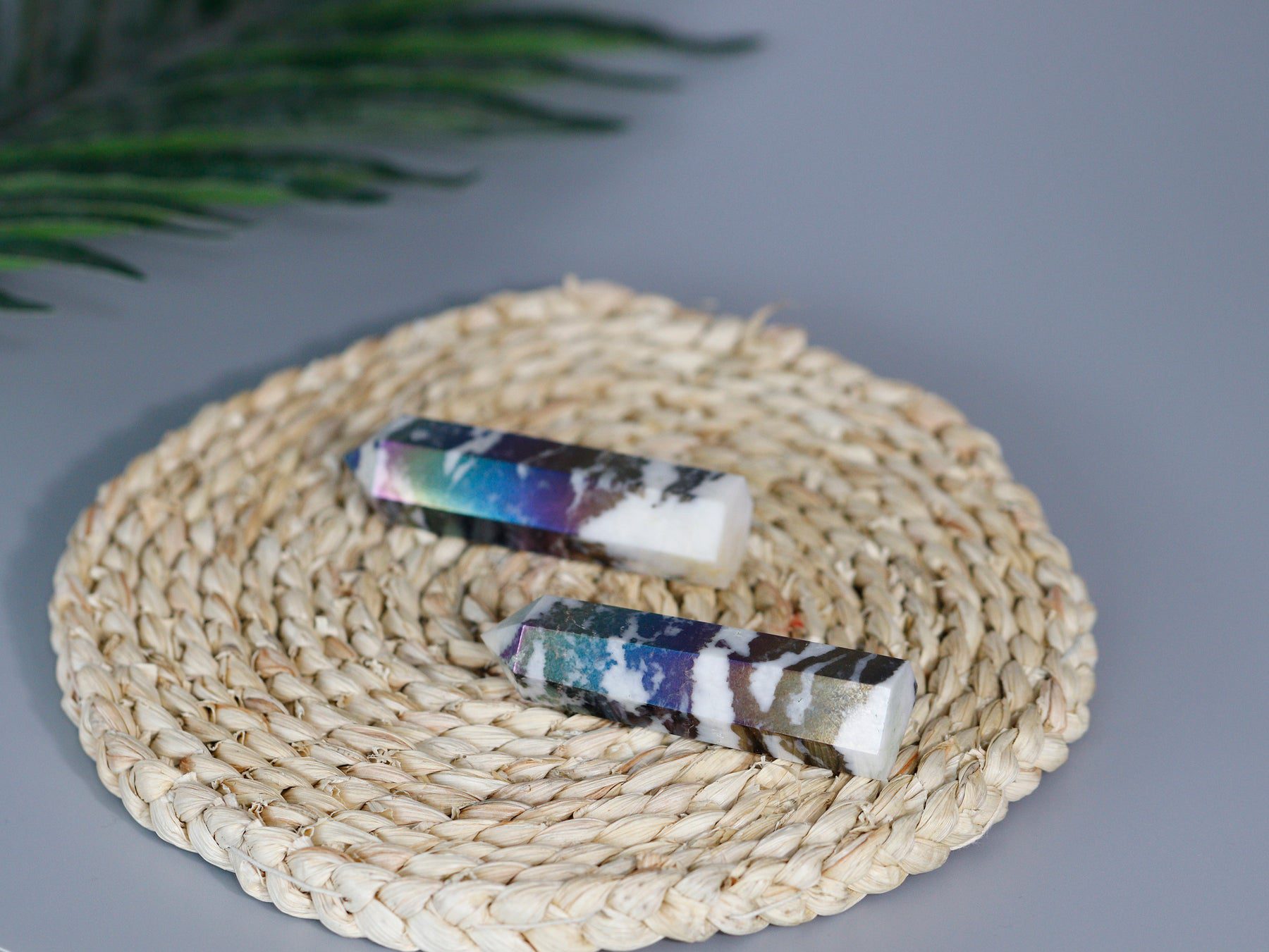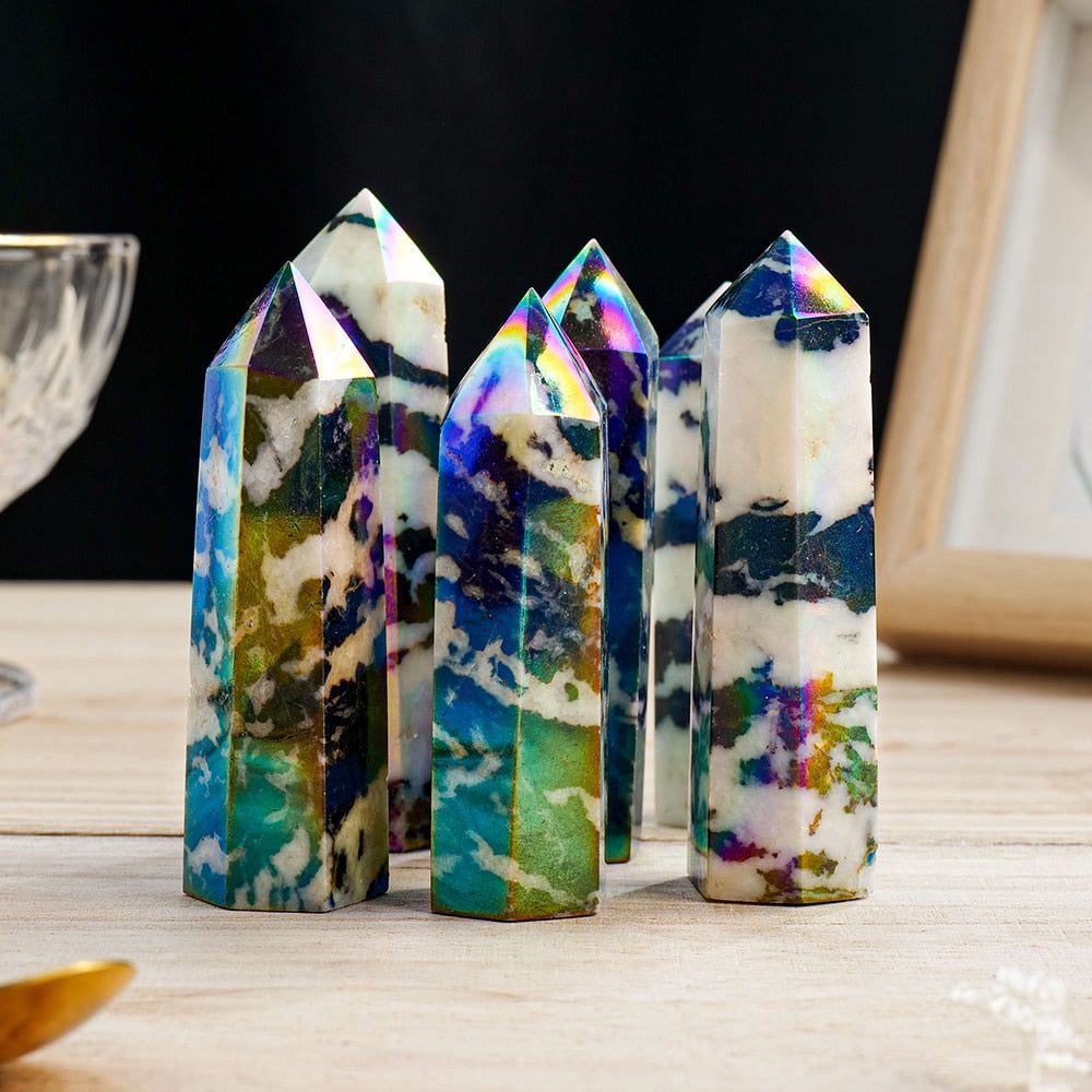 Harness the captivating energies of the Aura Zebra Stone Wand, a remarkable and powerful crystal tool crafted from Jasper. This exquisite wand is more than just a be