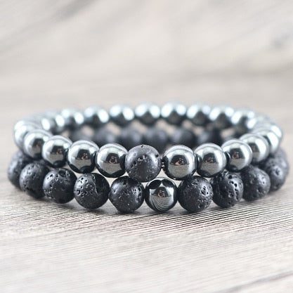 Balancing Hematite and Lava Stone Protection Bracelets
