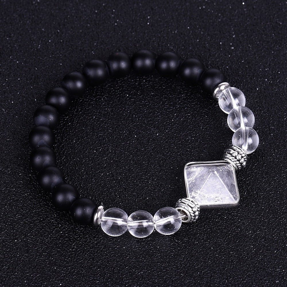 Bring balance and harmony into your life with the Balancing Pyramid Quartz Charm Bracelet.