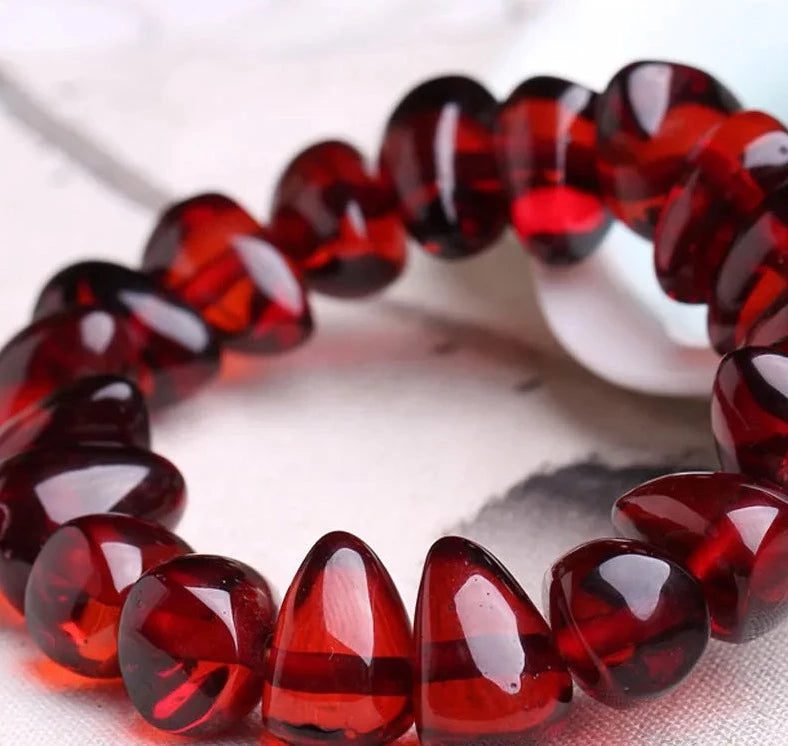 Blood Amber is used to make this 18cm bracelet. It is believed to help you gain more courage and feel more protected, so it is used to promote good luck and success in your life. Amber is believed to soothe tensions and invigorate mood by absorbing negative energy and releasing bright, soothing energy.