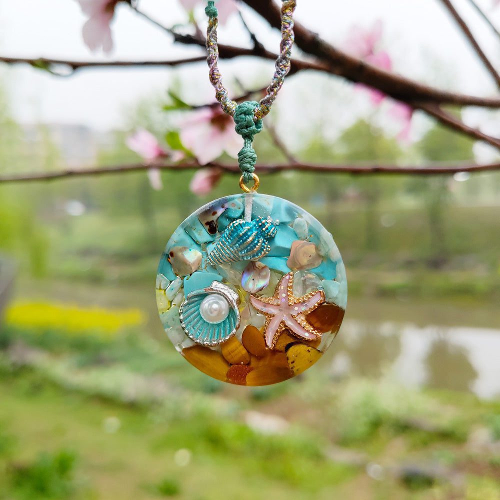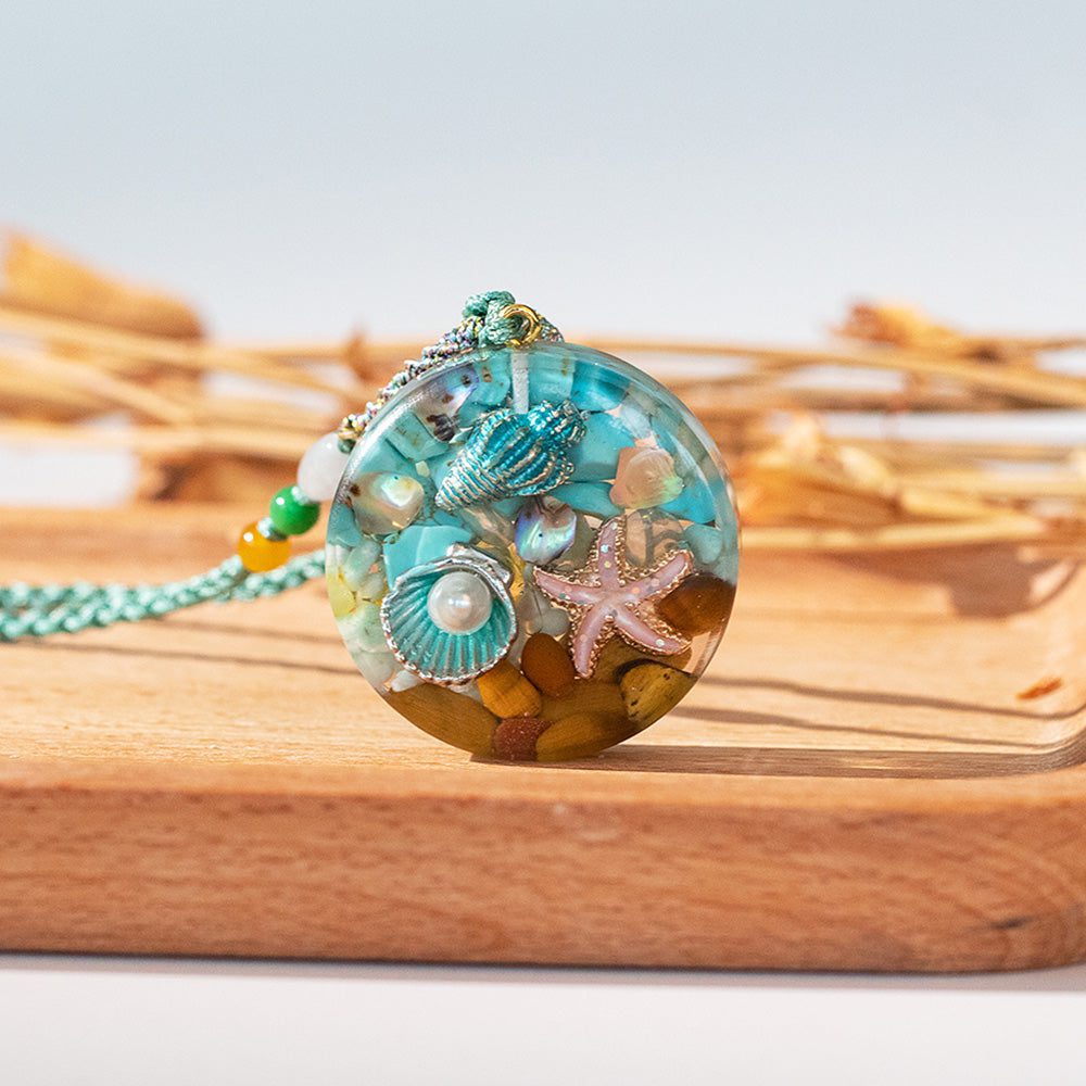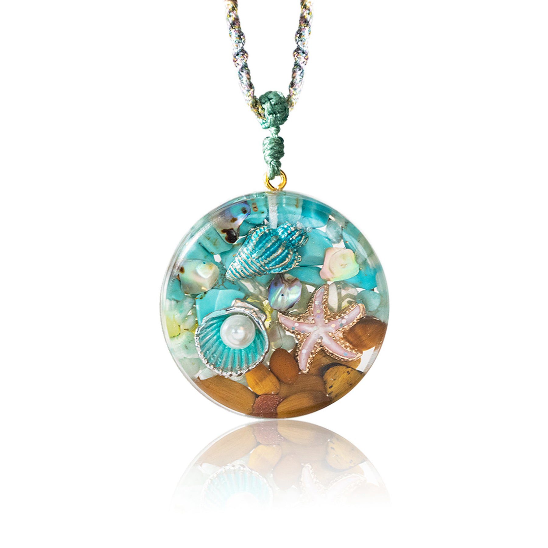 Embrace the benevolent energies of the Benevolent Guidance Orgone Pendant, a captivating and empowering necklace crafted with a remarkable blend of Turquoise, Tiger's Eye, Golden Sand, Shell, Topaz, Opal, and Epoxy Resin. This pendant is not just a beautiful accessory; it is a powerful talisman designed to offer guidance, protection, and spiritual empowerment.