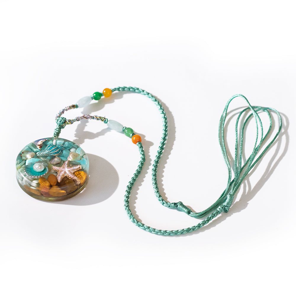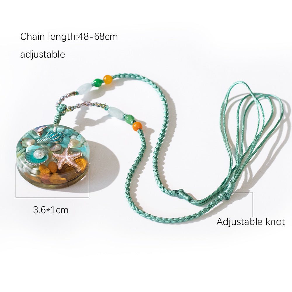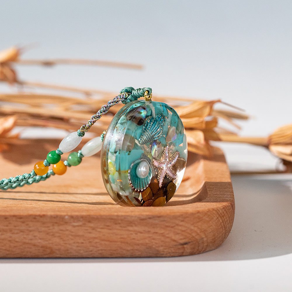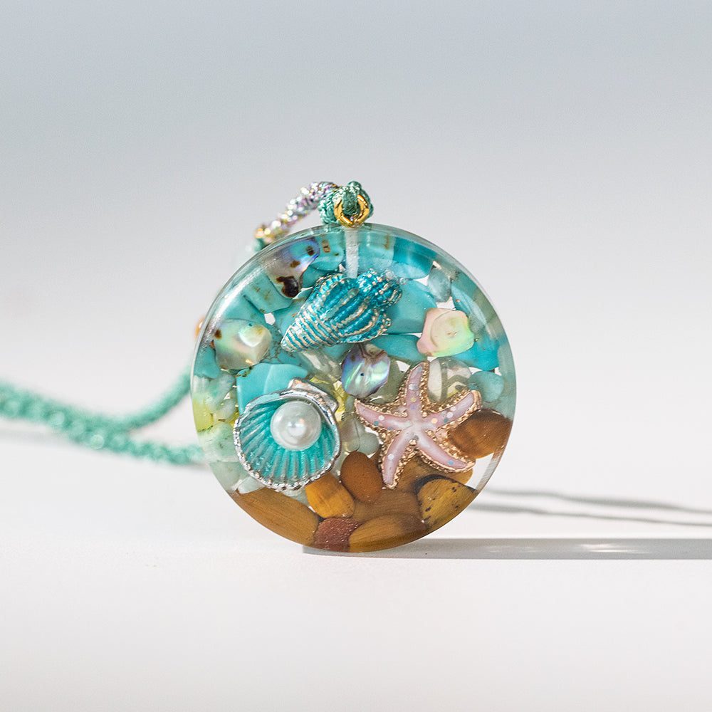Embrace the benevolent energies of the Benevolent Guidance Orgone Pendant, a captivating and empowering necklace crafted with a remarkable blend of Turquoise, Tiger's Eye, Golden Sand, Shell, Topaz, Opal, and Epoxy Resin. This pendant is not just a beautiful accessory; it is a powerful talisman designed to offer guidance, protection, and spiritual empowerment.