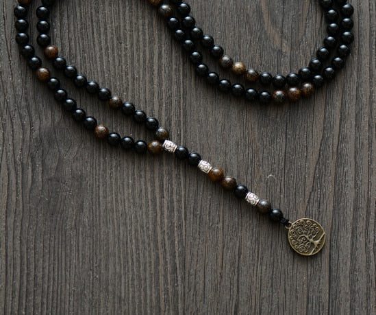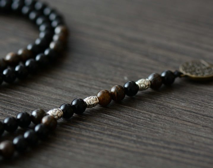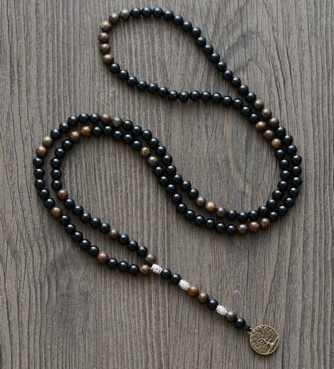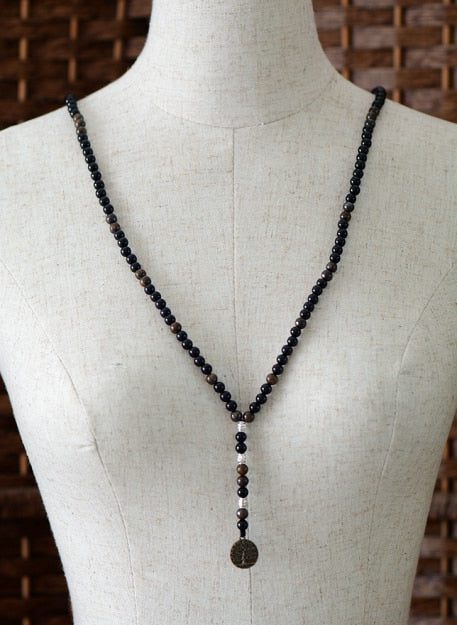 The natural stone beads of this Black Agate Grounding Necklace are hand selected piece by piece to ensure a high quality piece of jewelry. They are handmade by our skilled jewelers combined with black agate beads, wood beads, tree of life pendant and silver toned stainless steel spacer rings creating a magnificent contrast.