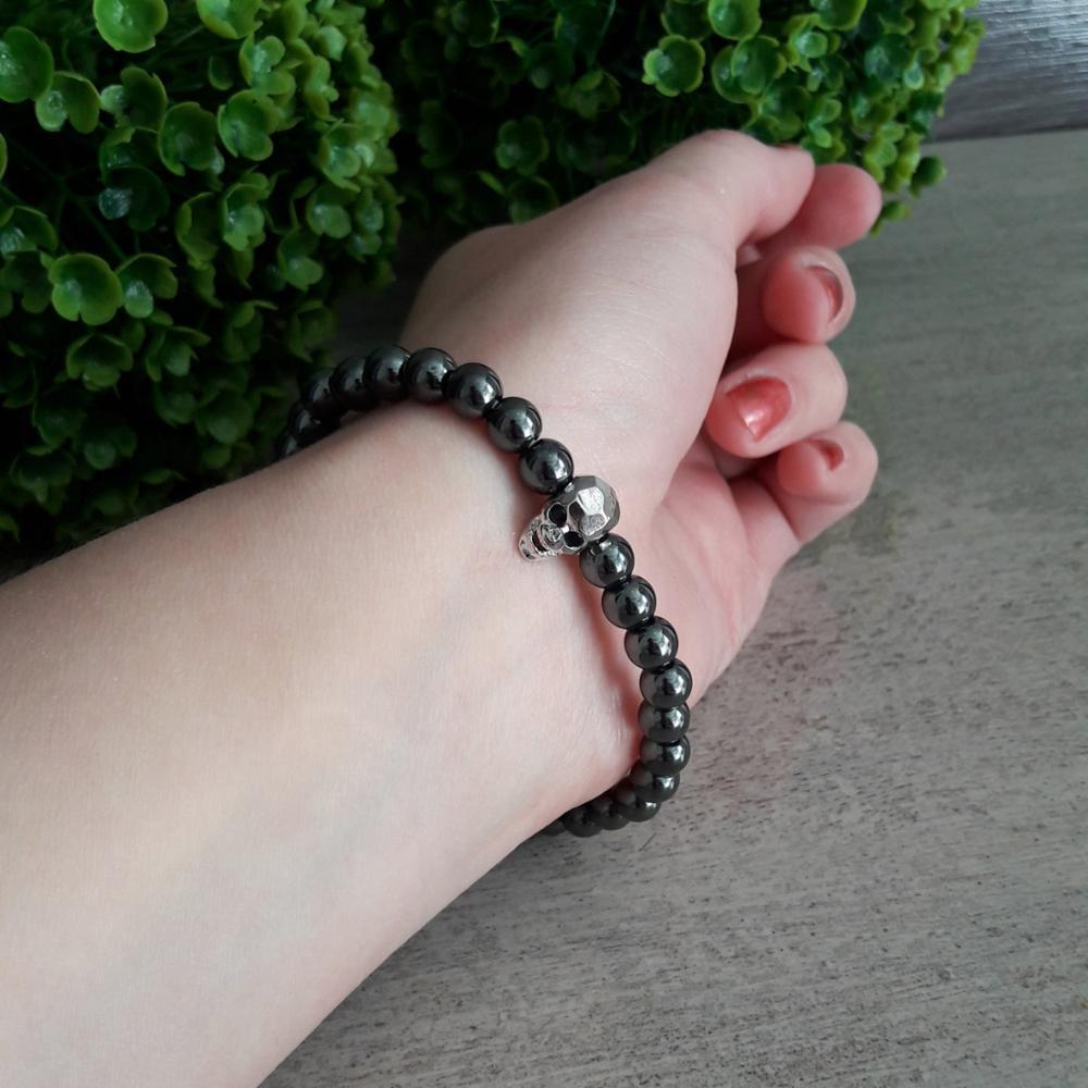 Black Hematite Skull Bracelet