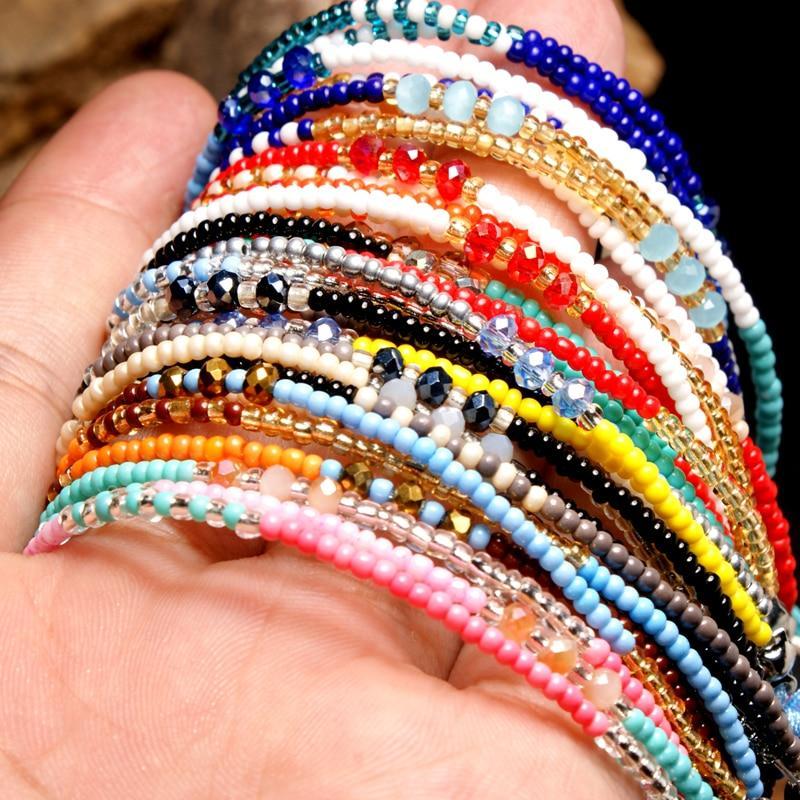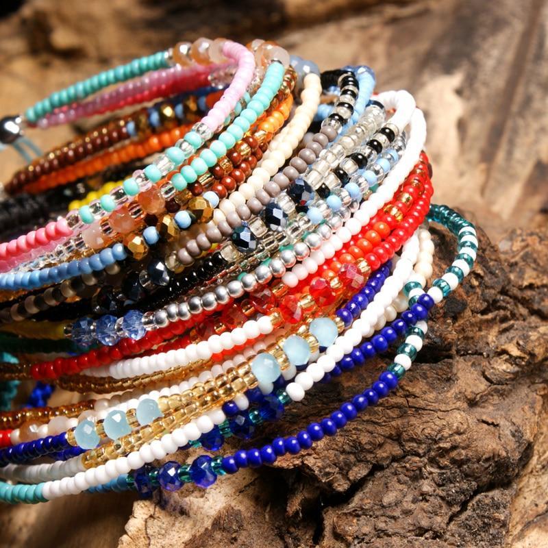 Each bracelet is made with vividly colored seed beads with three tiers creating a beautiful layered look with a sliding knot clasp making it neat and easy to wear.