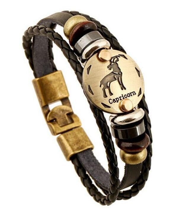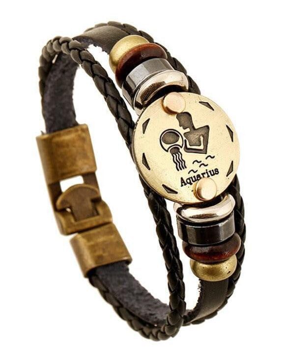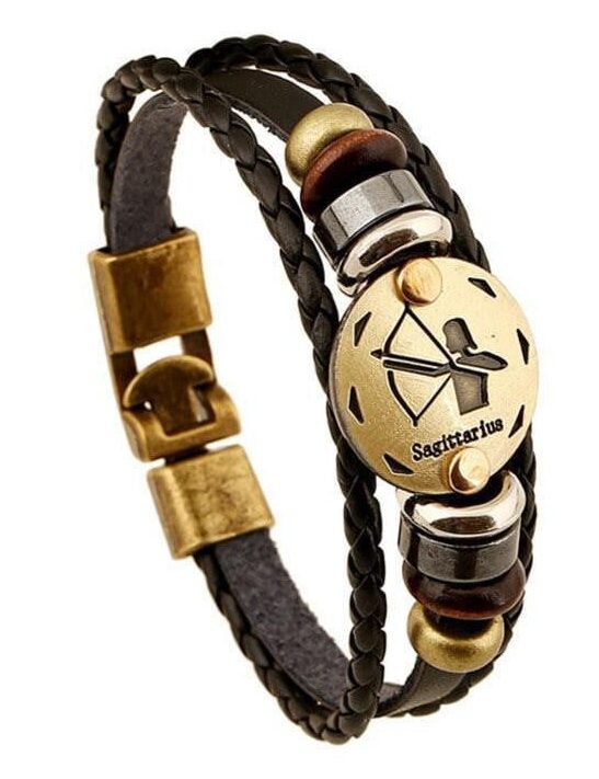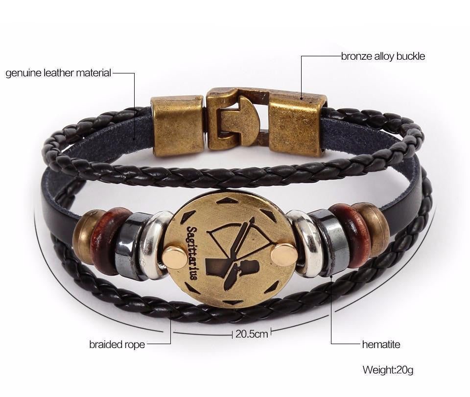 Want to give people an idea to help understand you a little better at a glance? Sport this stylish stainless steel bronze zodiac leather bracelet!