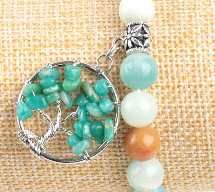Wear this beautiful Calming Breeze Chakra Bracelet on your left hand and feel the relaxing energy of Amazonite and attract the abundance of the Tree of Life.