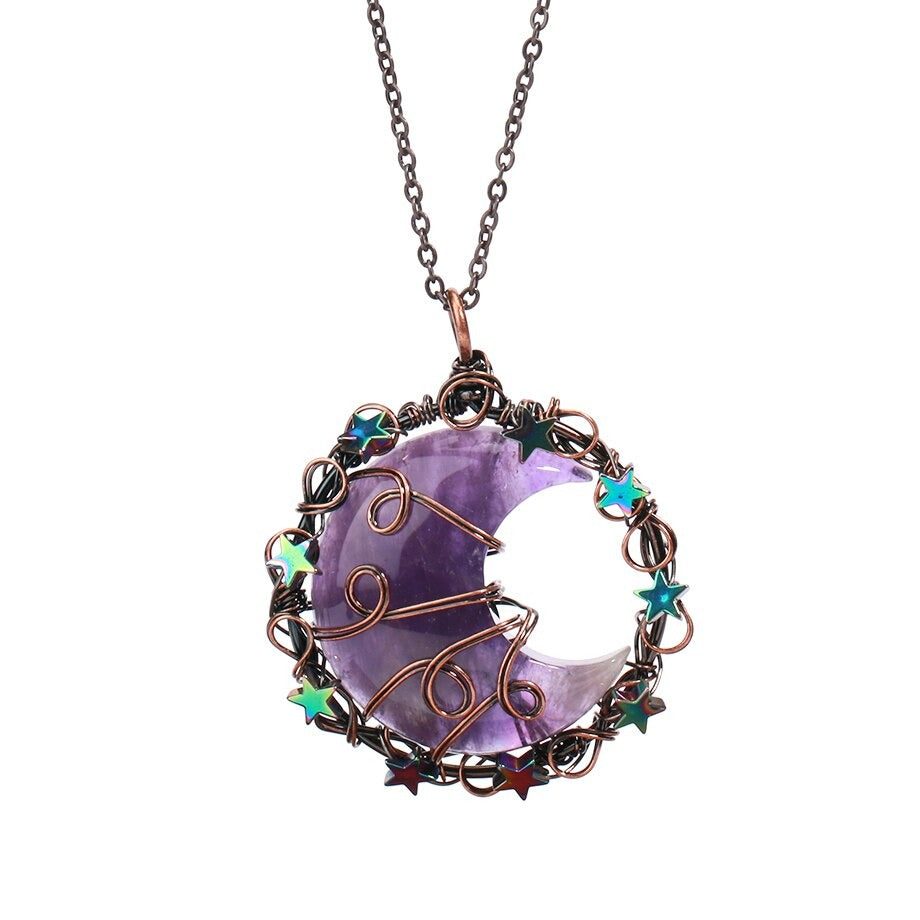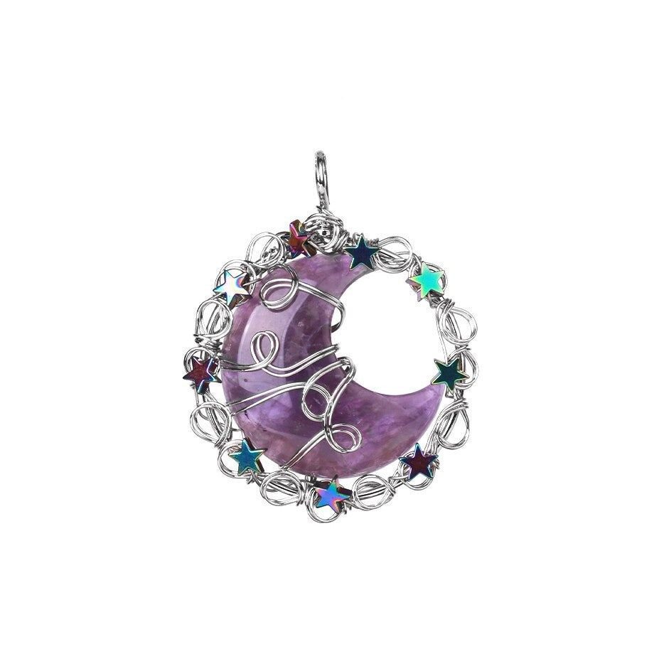 A celestial-inspired piece that beautifully captures the mystique of the night sky - the Moon Star Amethyst Pendant Necklace. This necklace, crafted with precision and care, is a stunning fusion of the calming energies of amethyst with the timeless elegance of a celestial design.