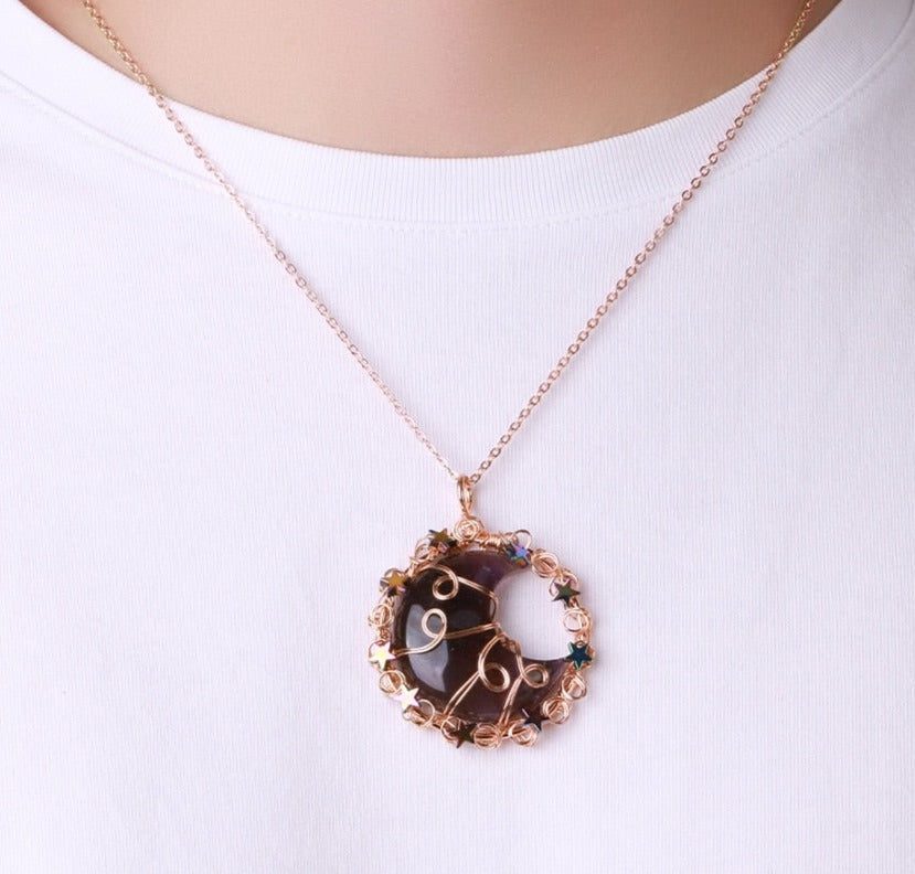 This Moon Star Amethyst Pendant Necklace is more than just an accessory; it's a celestial journey. As you wear this pendant close to your heart, you invite the serene energies of amethyst and the symbolism of the moon and stars into your life. It serves as a reminder that even in the darkness of the night, there is always light to guide us.