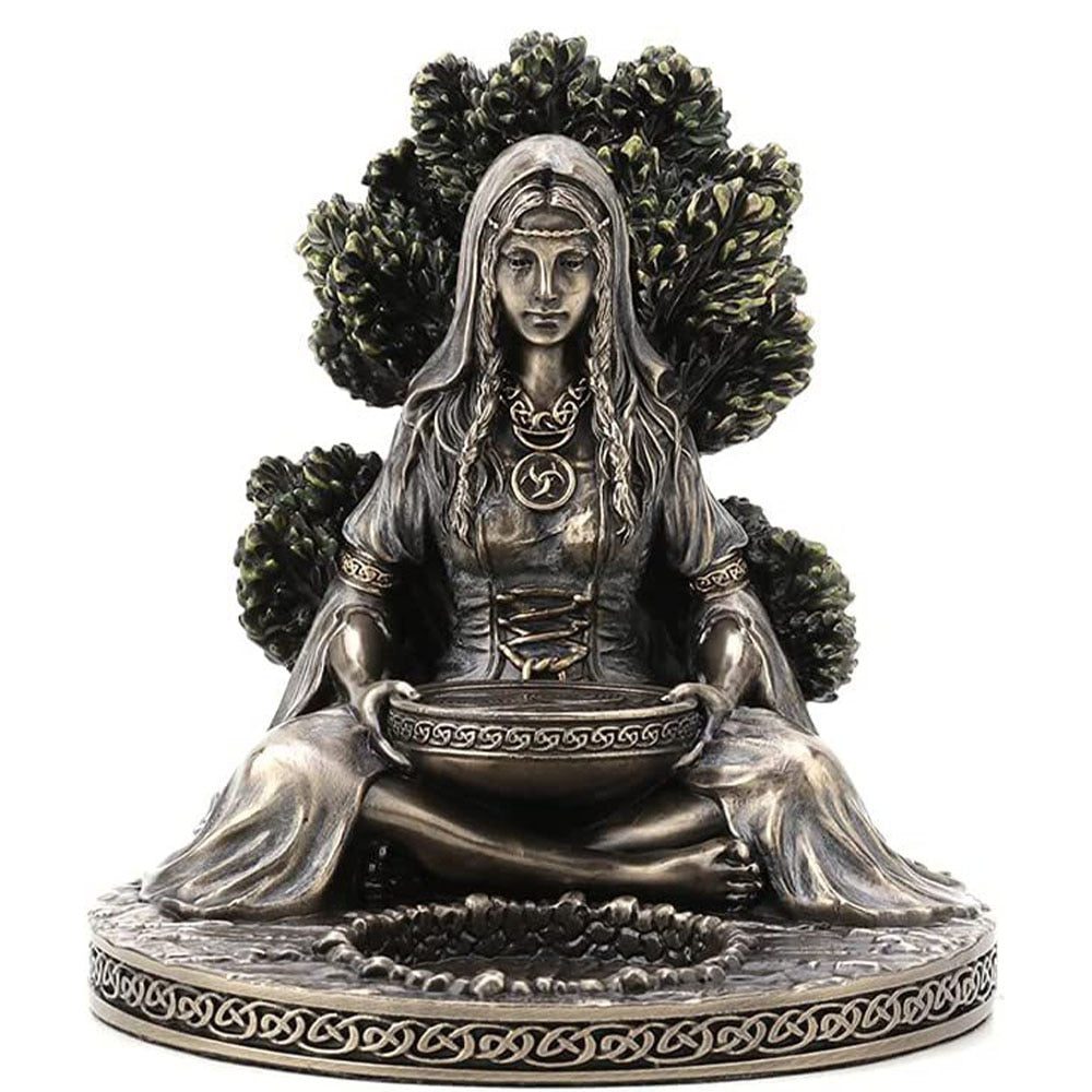 The Celtic deities Cernunnos and Danu are depicted in these lovely cast resin statues. The statues' hand-painted accents, which highlight the exquisite detail, have a metallic bronze finish. The statue is 4.9 inches and 4.5 inches. For your sacred space, these works of art offer a high-quality representation of the Celtic Gods thanks to their extraordinary attention to detail.