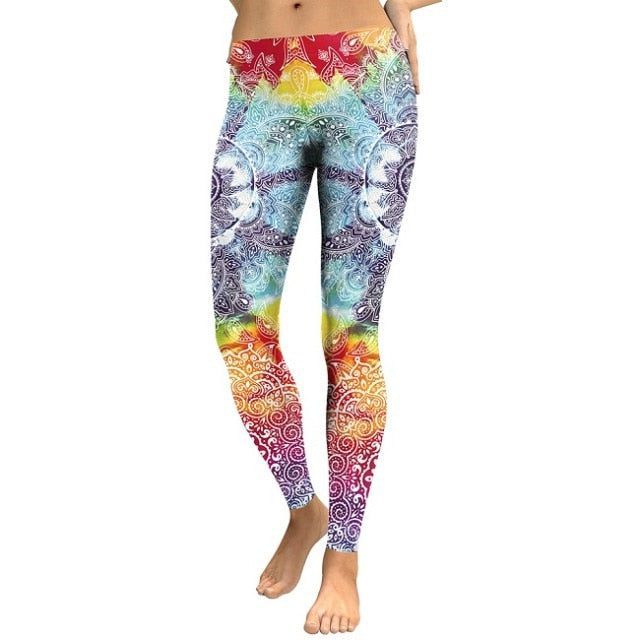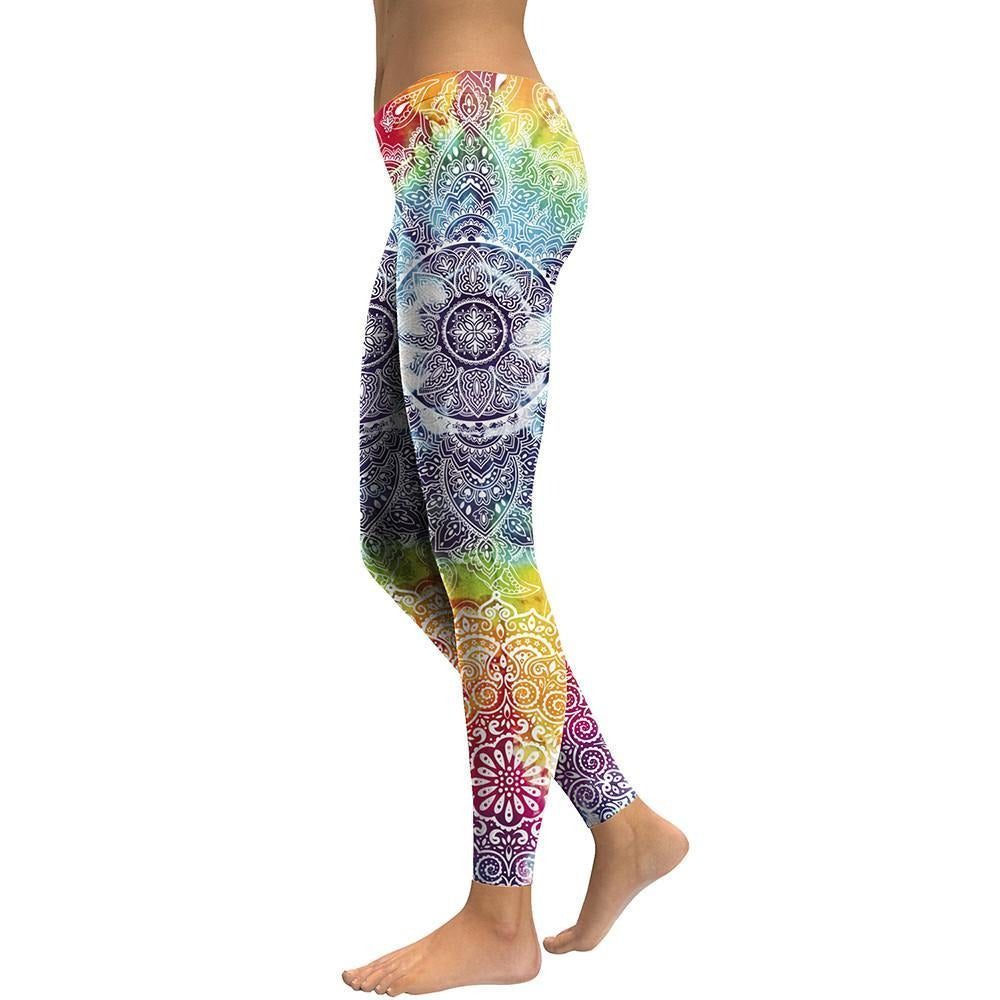 Designed to balance the seven chakras, these Chakra Burst Mandala Leggings help bring harmony and balance to the body and spirit. Printed with vibrant bursts of colours corresponding the seven chakras, these beautiful yoga leggings promote healing and vitality.