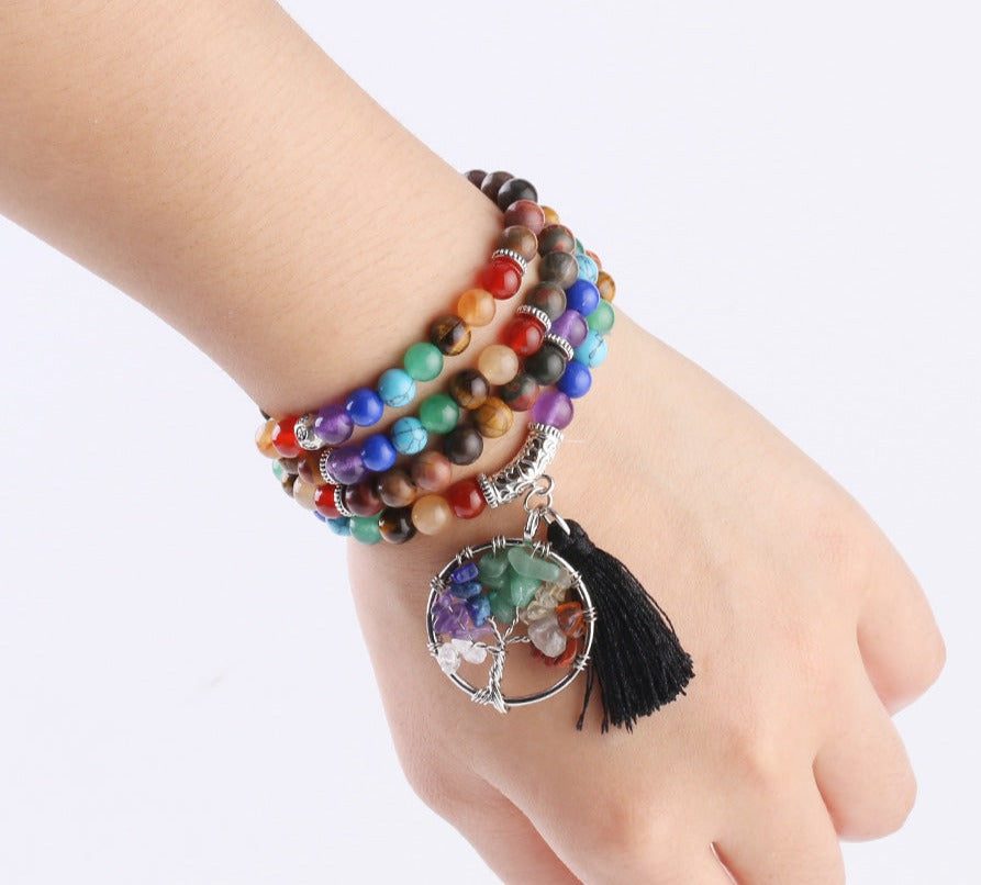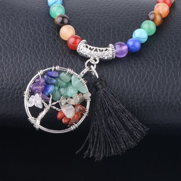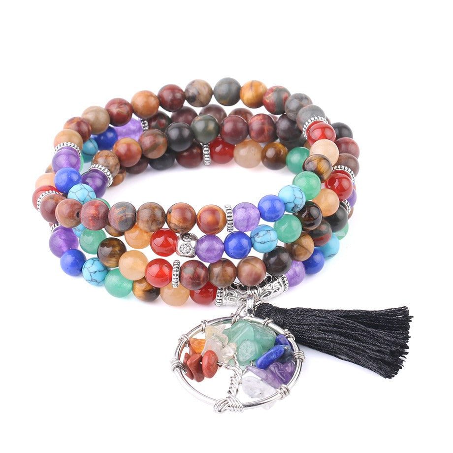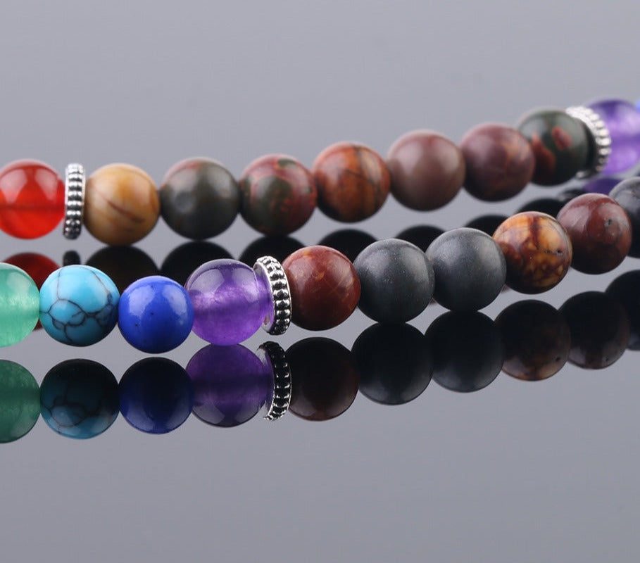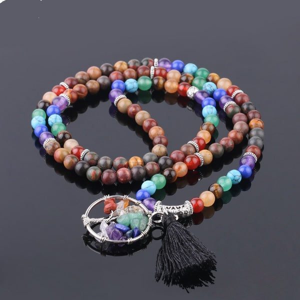 This beautiful chakra mala has a multi-colored hue that represents all the 7 chakras in your body that will naturally allow balance your chakras.