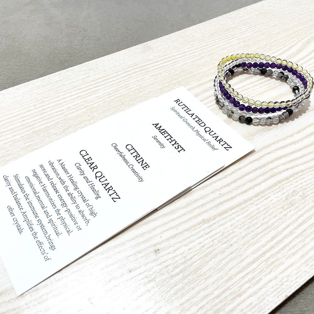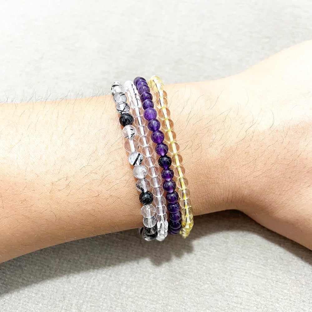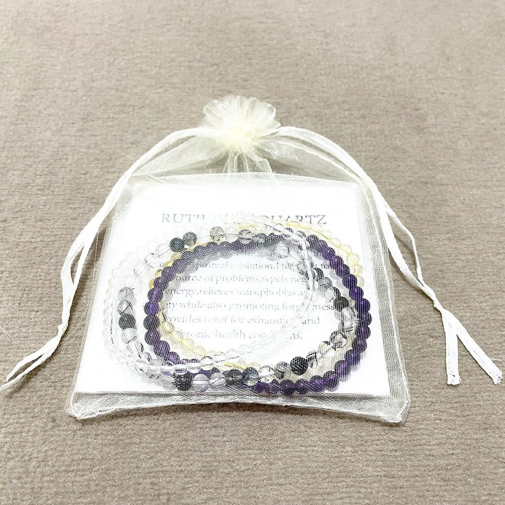Each bracelet is a unique piece of art, representing the sacred union of natural crystals. The set includes four bracelets, each with a bead size of about 4mm, designed to fit comfortably around your wrist with a diameter of about 7.48 inches.