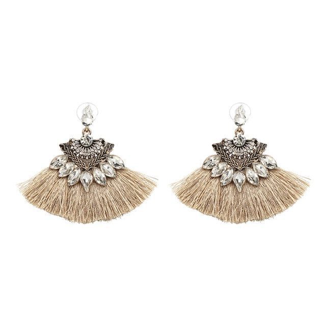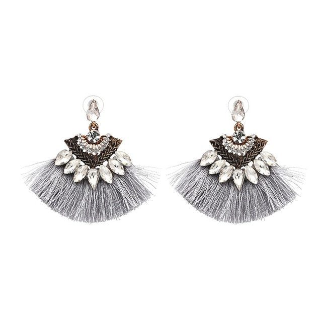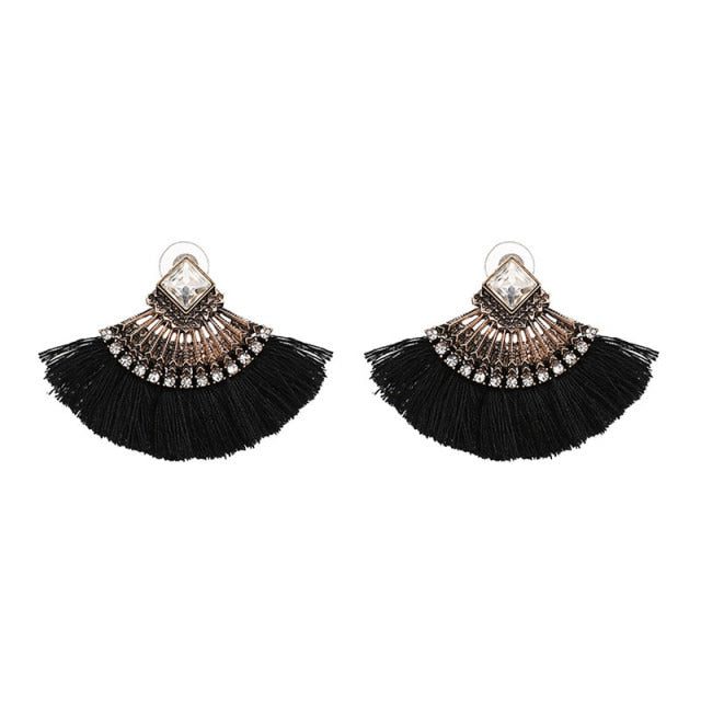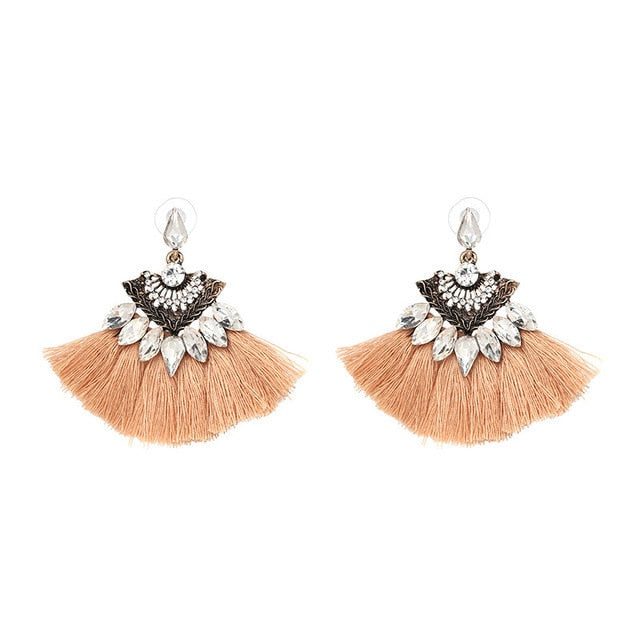 Life should be colorful and expressive and its best paired with a one-of-a-kind style. After all—you’re a true original! From cool and creative to classic and refined, this Classy Crystal Studded Tassel Fan Earrings personalize your entire look.