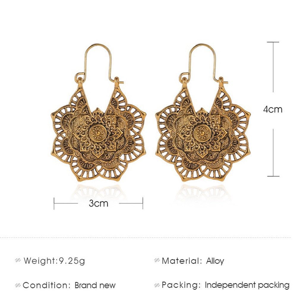 feature mandala shapes with intricate patterns. It is handmade and may have slight imperfections that add to the beauty of the piece. Simple yet classy, this gorgeous earrings goes perfectly with any outfit to personalize your look.