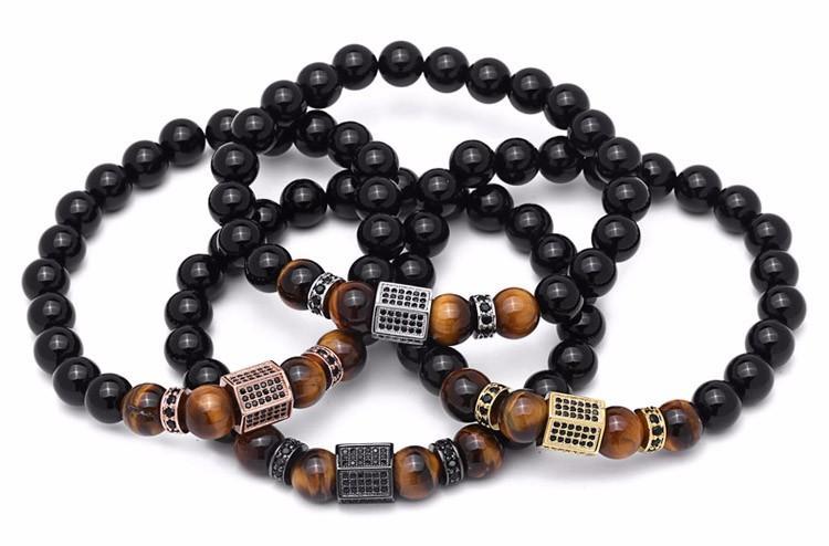 The natural stone beads are hand selected piece by piece to ensure a high quality piece of jewelry. They are handmade by our skilled jewelers and the elastic nylon makes it neat and easy to wear. The spacers and the hexagonal prism charm are paved with beautiful black cubic zirconia crystals added for that elegant sparkle. These stylish bracelets are perfect for any outfit whether you dress up or dress down, its the perfect classy accessory that just completes your look.