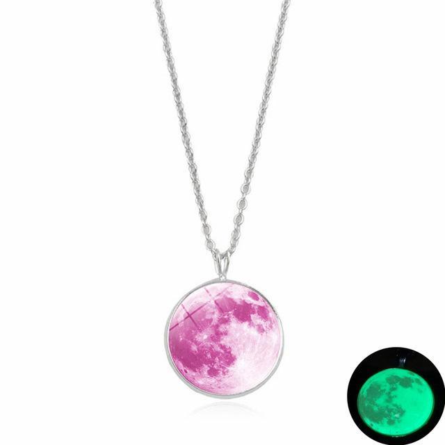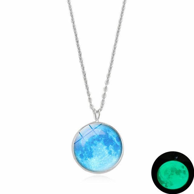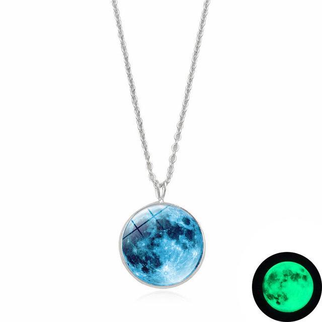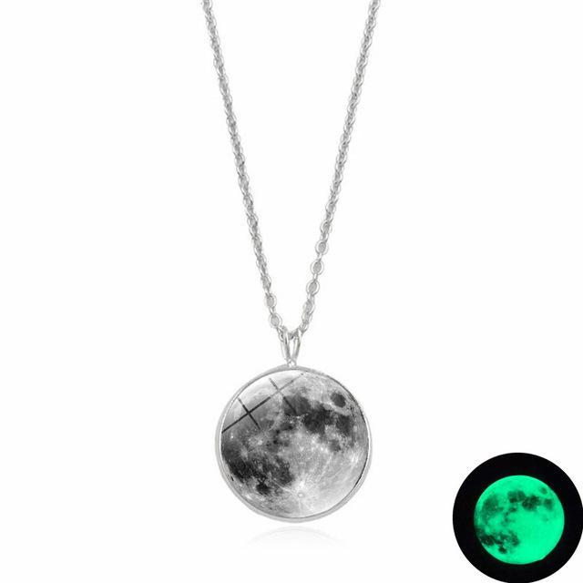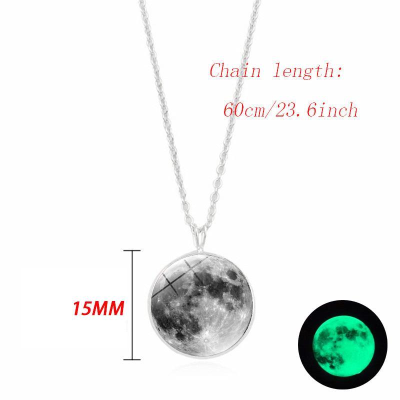 This Dark Side of The Moon Necklace casts a luminous glow in darkness through the cabochon glass dome that magnifies the clear design of the full moon. Made with high quality metal alloy, this beautiful piece of jewelry is eye catching with the moon pendant hanging from a classic silver plated link chain.