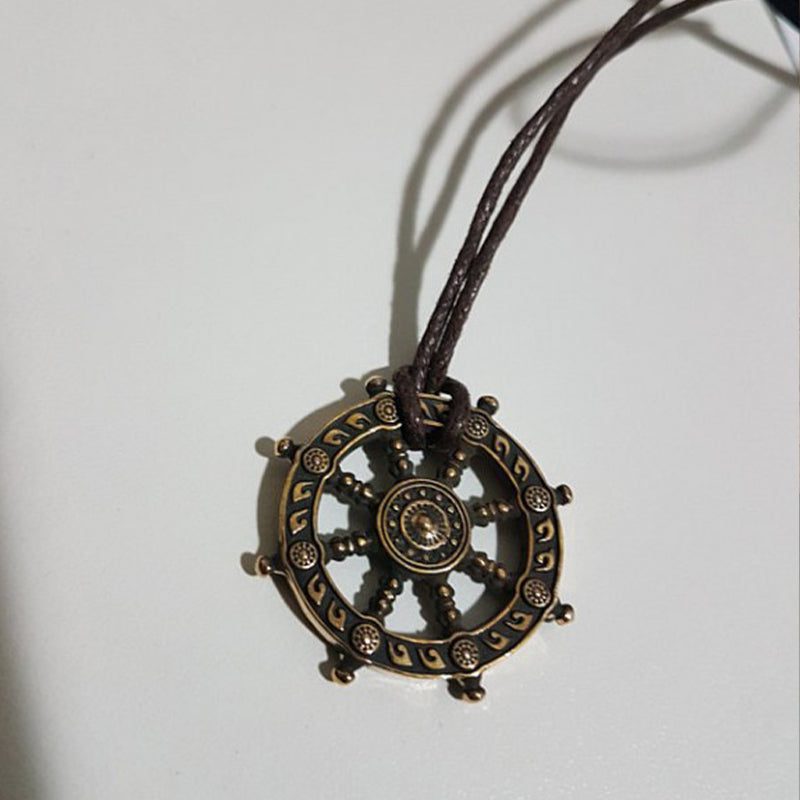 This sacred necklace symbol of the Dharma Wheel, otherwise called Dharmachakra is an image that reflects the lessons of the Buddha and portrays dharma, which the Buddhists show as the way to reach peace of mind or Nirvana.