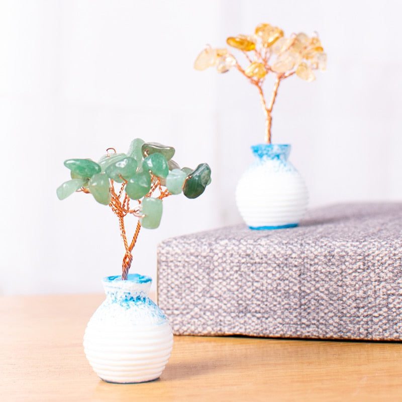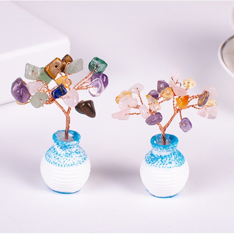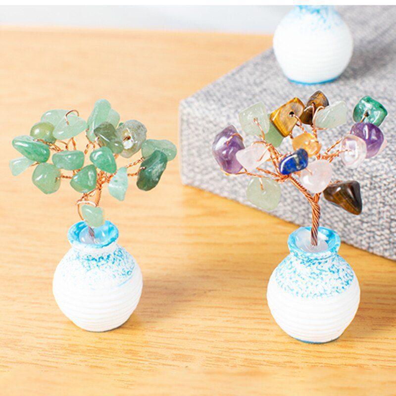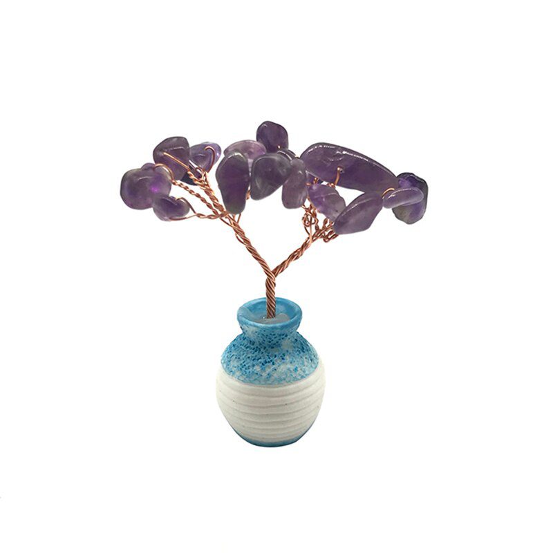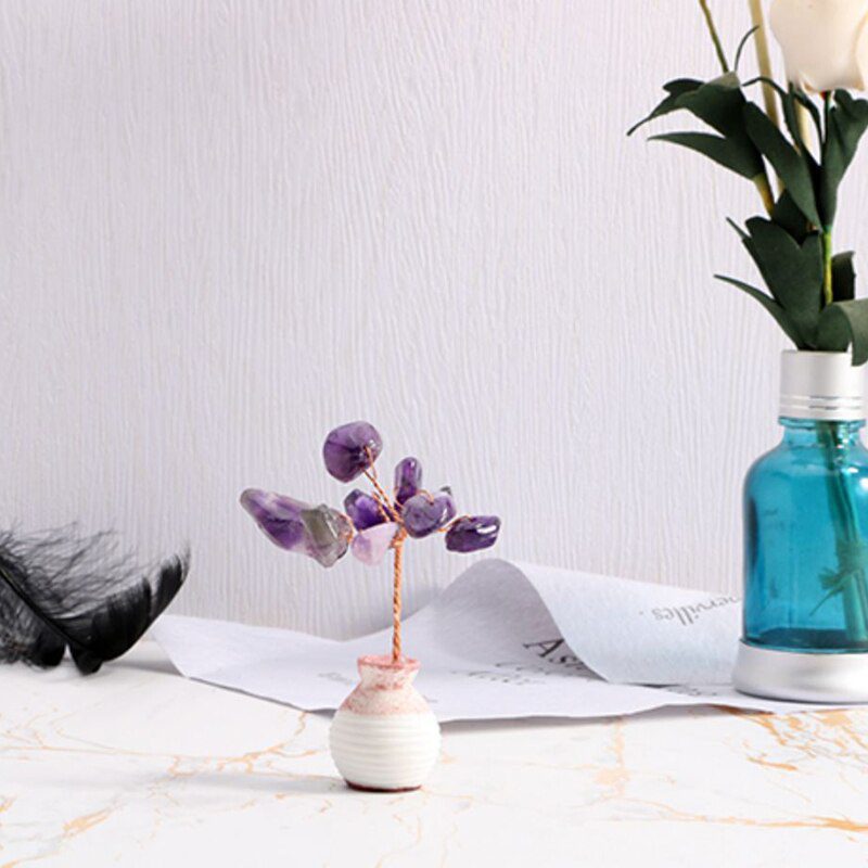 The stones in the Diminutive Fortune Tree are said to have different properties that can promote good luck, prosperity, and abundance. For example, topaz is said to attract wealth and success, amethyst is said to promote peace and tranquility, and rose quartz is said to promote love and compassion.