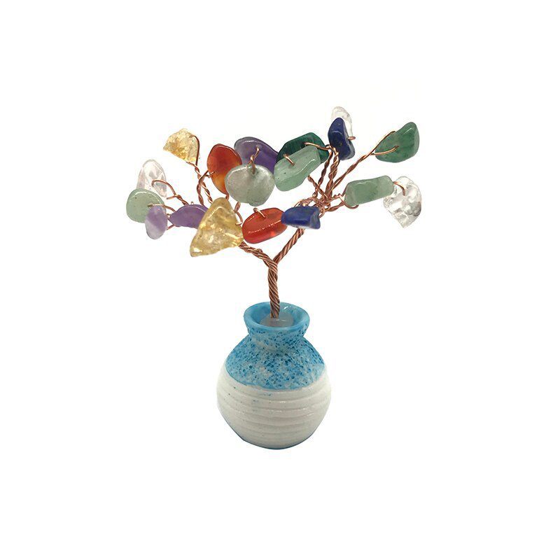 This beautiful tree is made with natural stones, including topaz, amethyst, rose quartz, green aventurine, red agate, and lapis lazuli. The tree is also made with resin and copper wire, which give it a sturdy and durable construction.