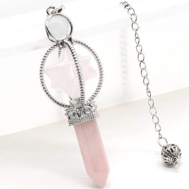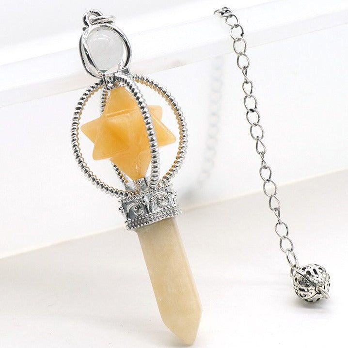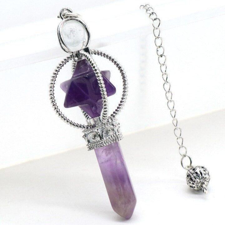 Our captivating Merkaba for Dowsing Divination Pendulum is a unique tool that seamlessly melds the natural energy of gemstones with the timeless art of dowsing. This pendulum, crafted with precision, is designed to enhance your divination journey, offering you a choice of powerful gemstones to align with your specific needs.