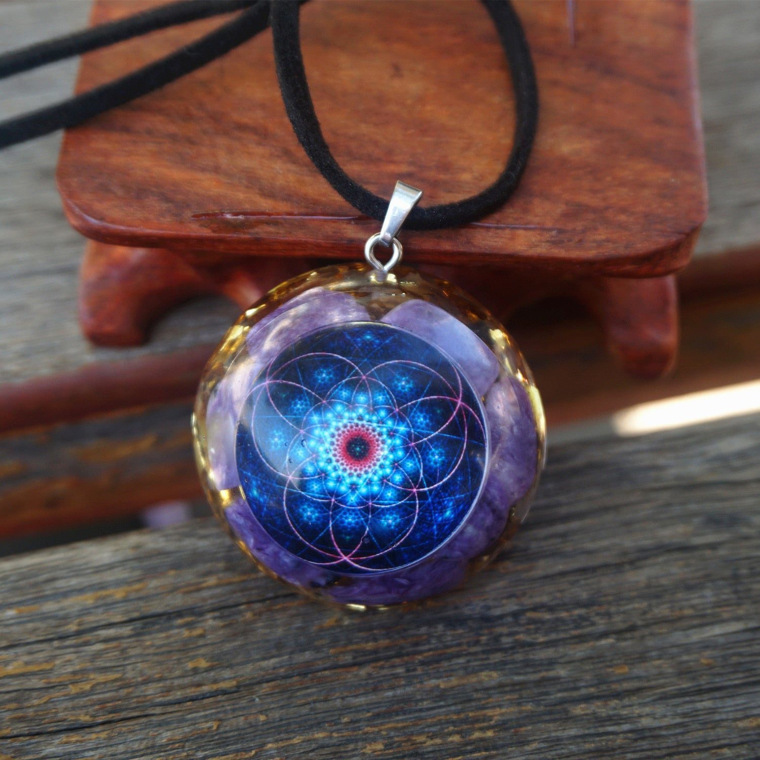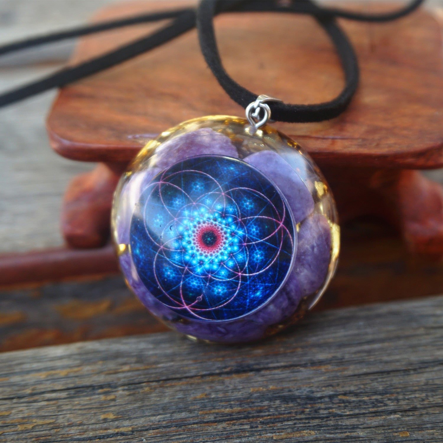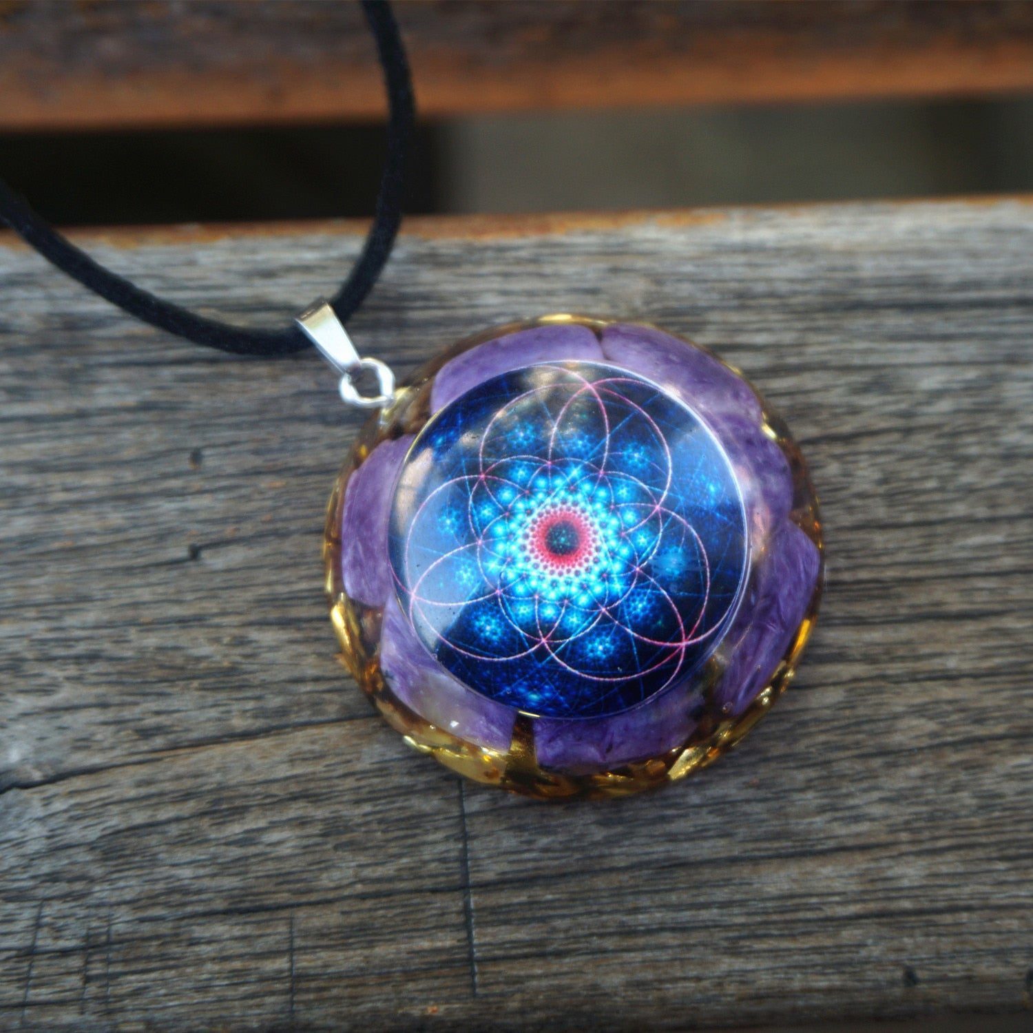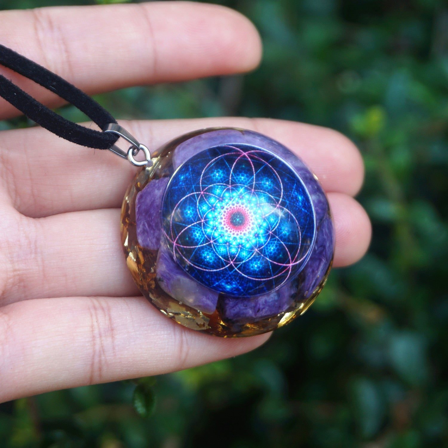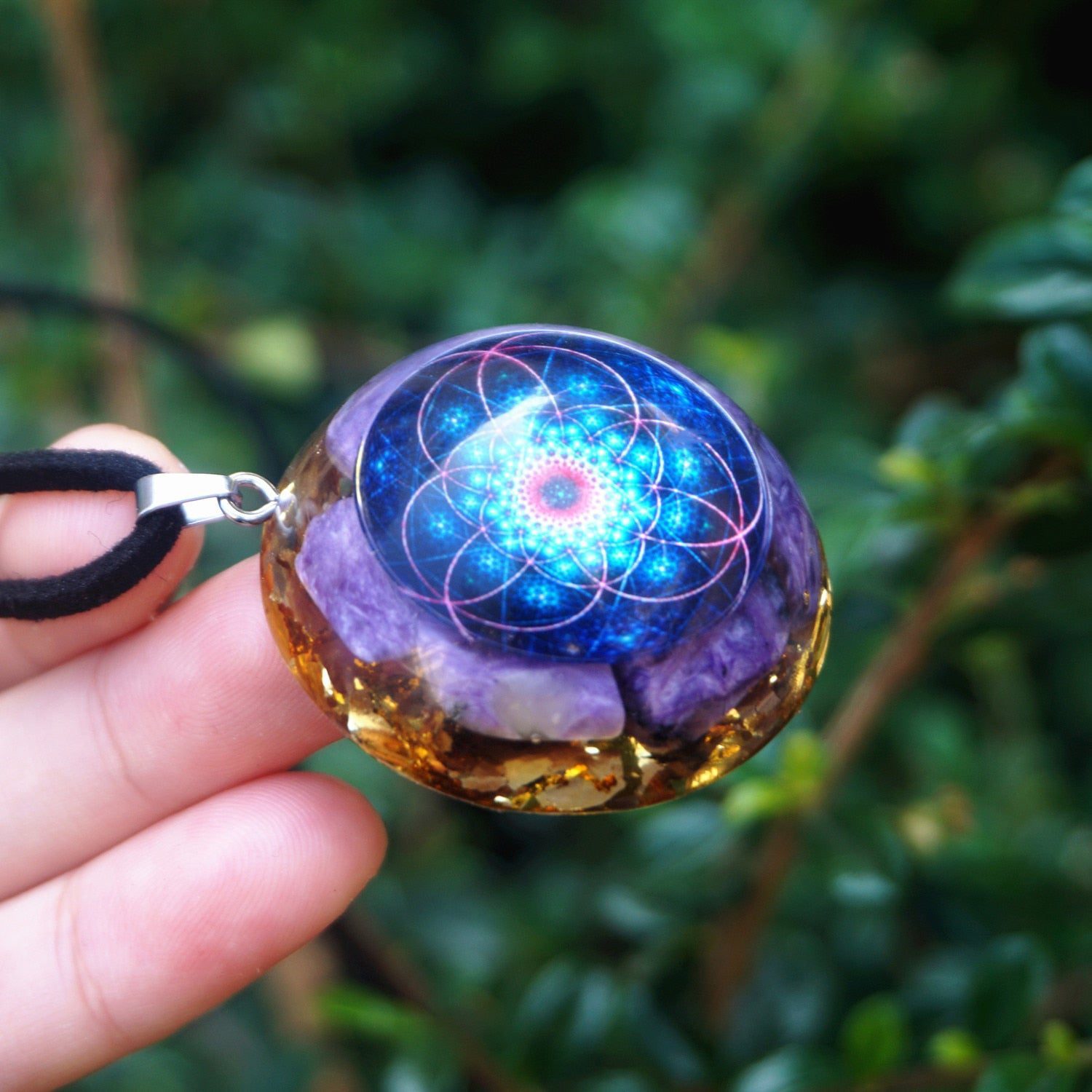 Immerse yourself in the harmonious blend of Wilhelm Reich's Orgone energy and the mystical qualities of Charoite with our Cleansing Crystal Orgone Necklace. As you wear this exquisite piece, experience a heightened connection to higher frequency energy while remaining grounded and empowered to manifest your desires in the physical world.