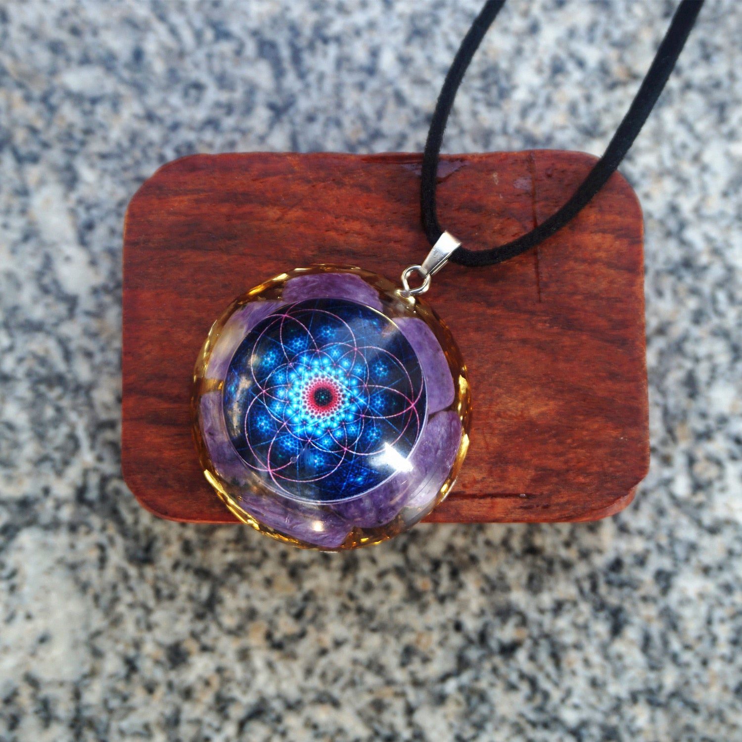 Introducing our Cleansing Crystal Orgone Necklace, a fusion of Wilhelm Reich's Orgone energy principles and the enchanting properties of Charoite. Inspired by the groundbreaking work of Wilhelm Reich, who discovered Orgone energy and its manipulation through layers of metal, wood, cotton, and resin, our necklace is crafted to maintain a dynamic energy flow within the Orgonite matrix. This unique combination of materials serves as a powerful tool for protection, particularly against the effects of electromagnetic pollution or EMF.