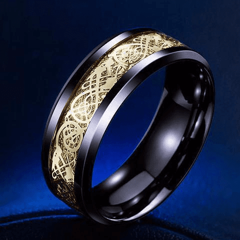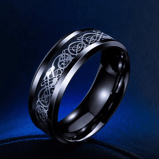 Made of titanium steel and with mystic dragon ornaments worked into the middle.