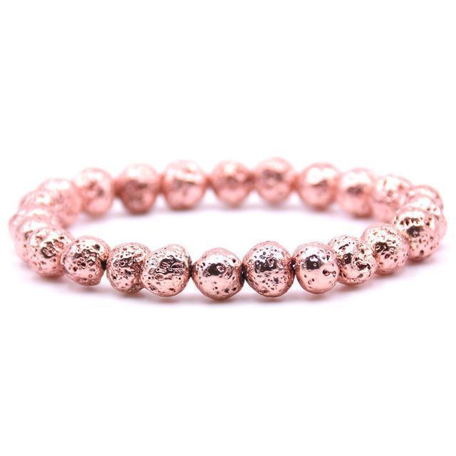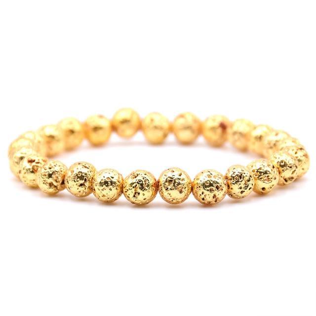 This stunning Elegance Lava Stone Bracelet is made with natural lava stone beads dipped in striking lustrous metallic tones giving it an elegant and high-class look that will complement any outfit from jeans to suits. The porous nature of lava stone also makes it the ideal jewelry piece to infuse your favorite essential oils. Enjoy the benefits of lava stone together with your favorite scent on the go.
