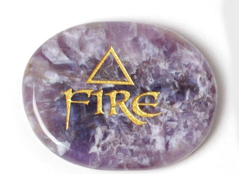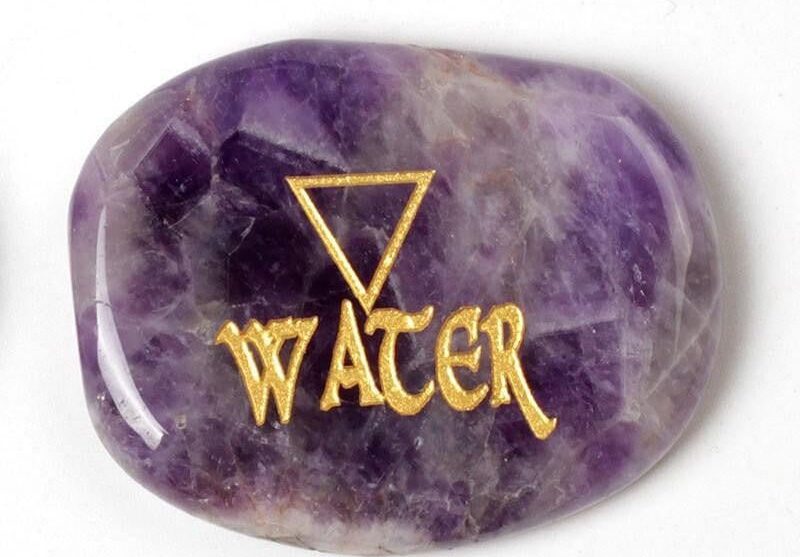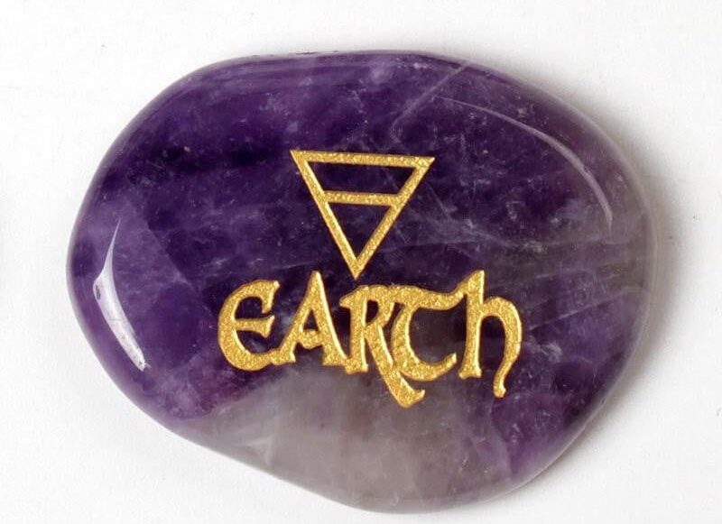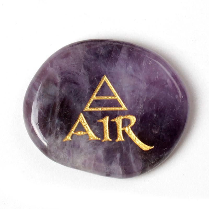 Each Amethyst smooth polished stone has been engraved with each element name and corresponding ancient symbol and filled with a beautiful gold tone.