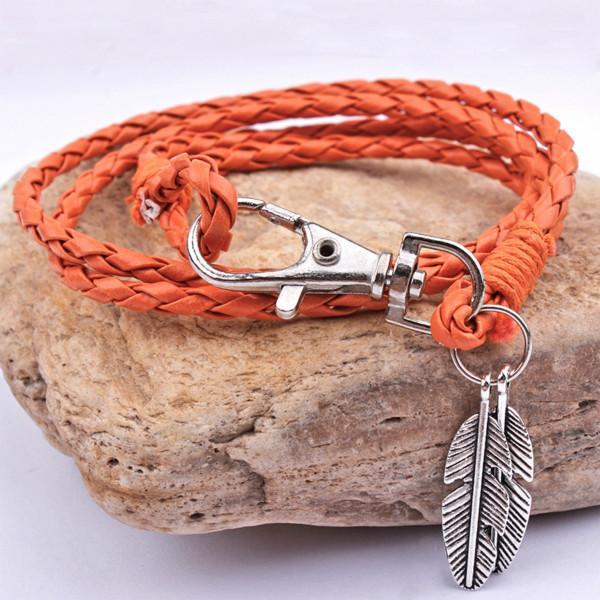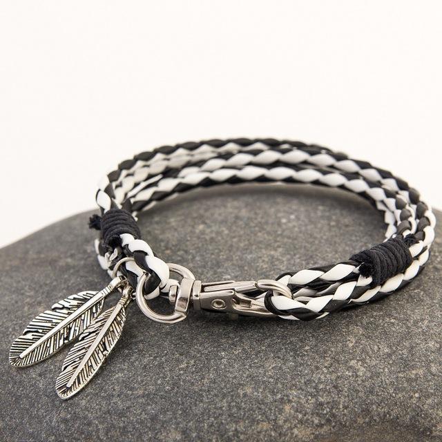Each bracelet is carefully braided using high-quality leather strips and from it dangles two endearing stainless steel feather charms. A beautiful piece to fit your style, this stylish bracelet is perfect for any outfit whether you dress down or dress up, its the perfect accessory that just completes your look.
